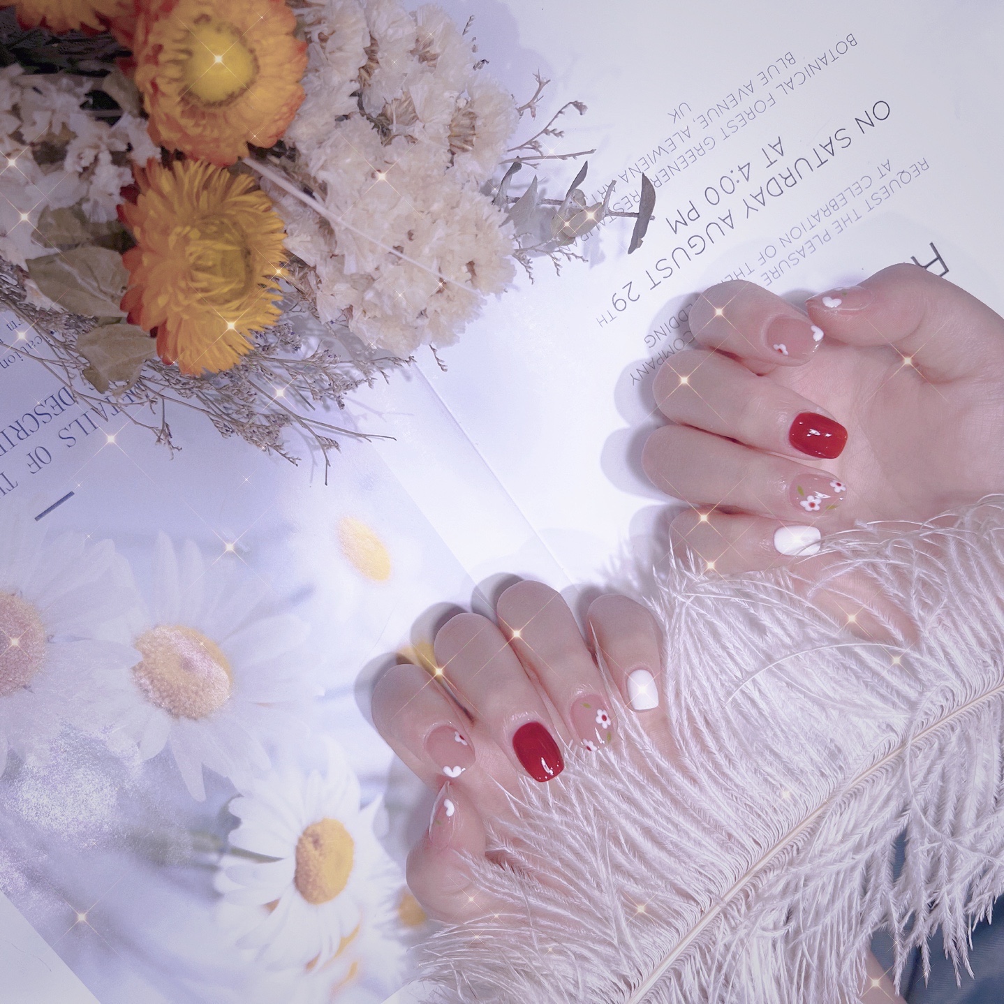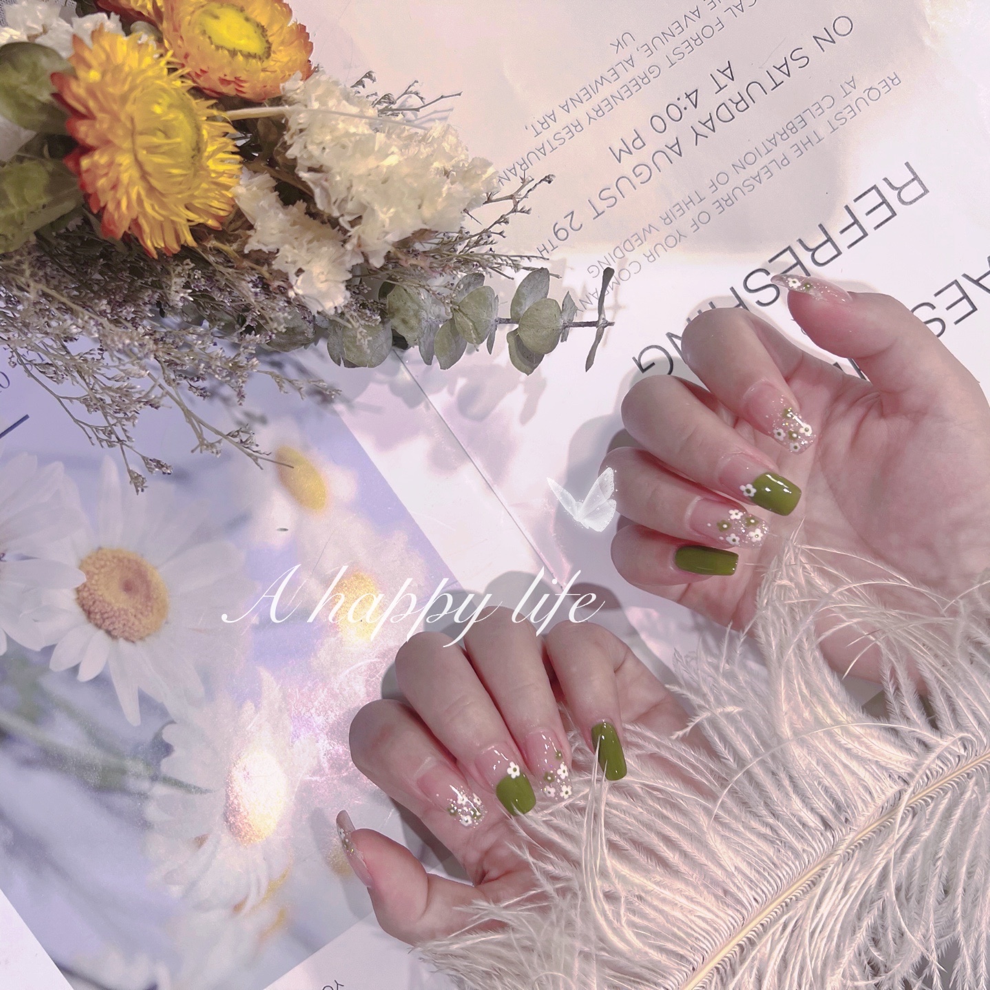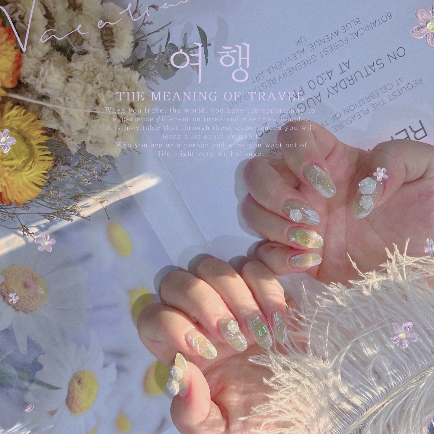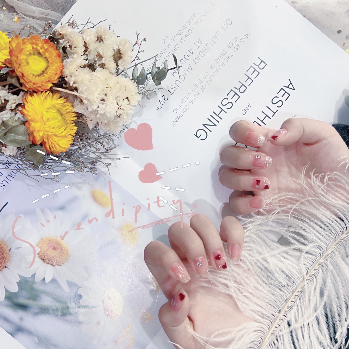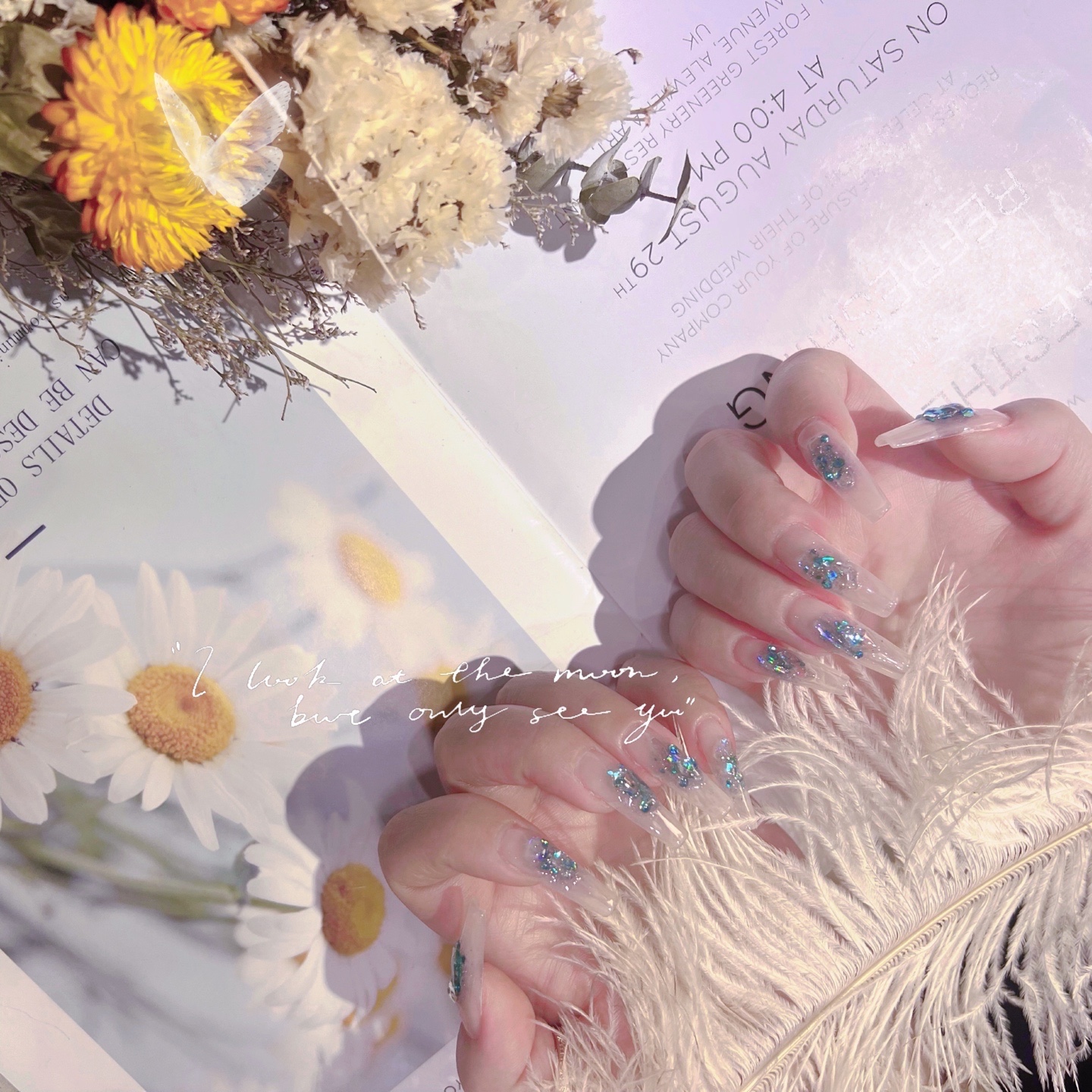 2022年春夏流行美甲款 极光冰透蓝美甲款 镜面黑色爱心美甲 手绘美甲款