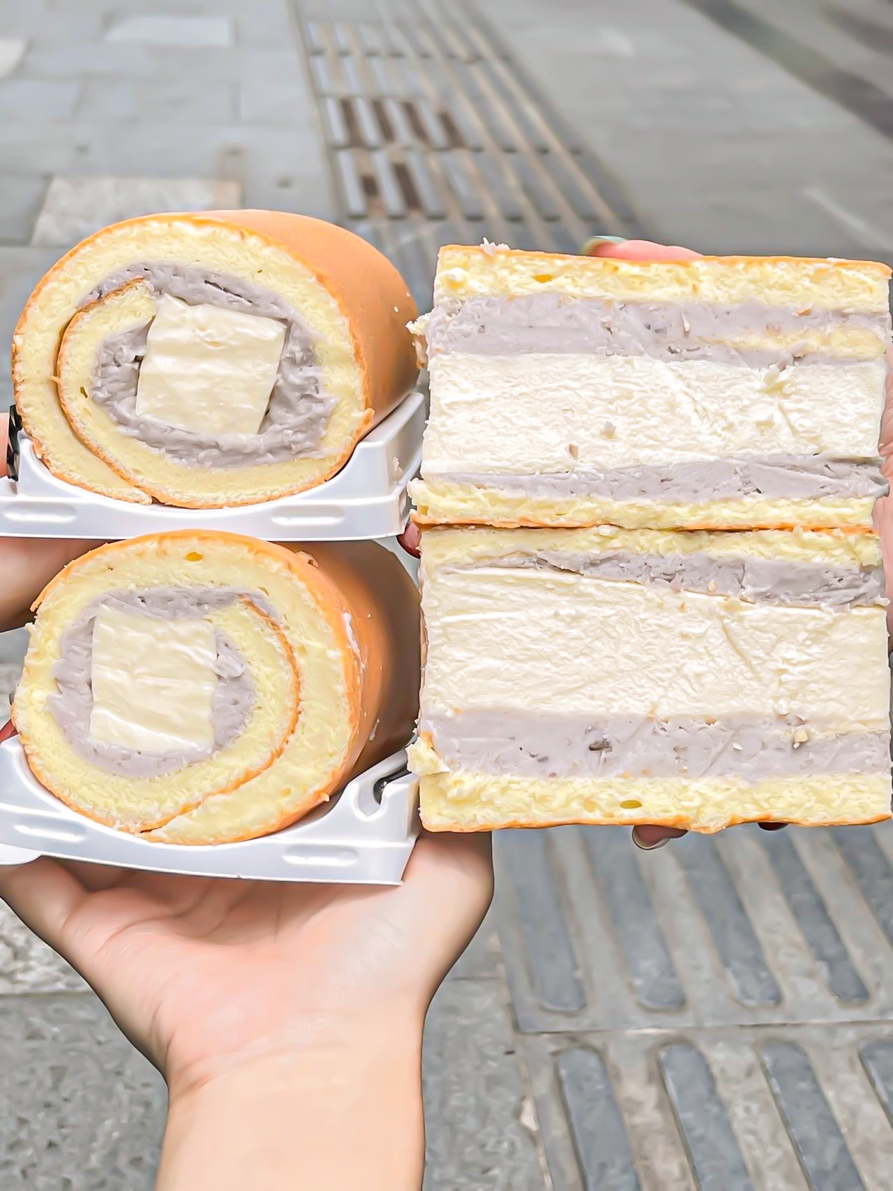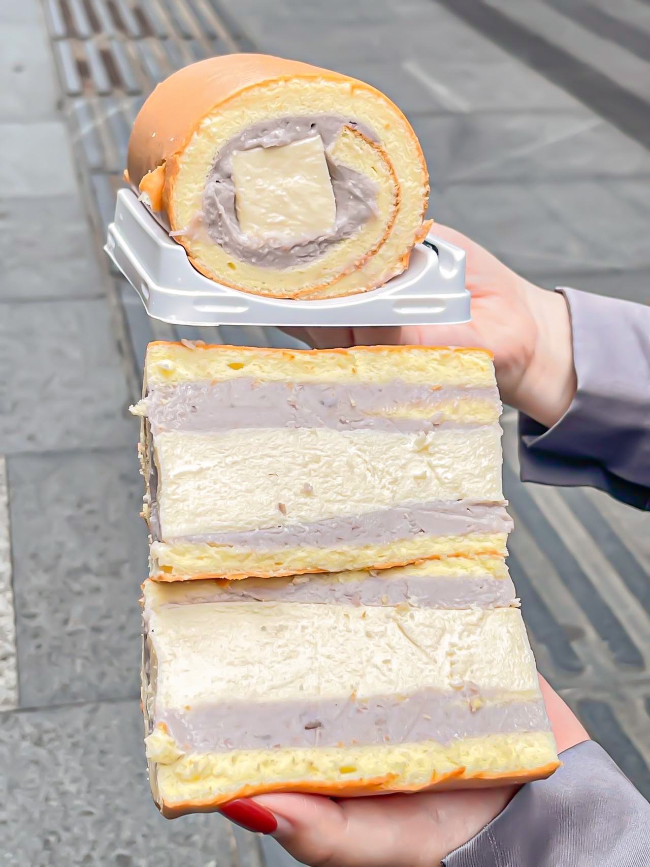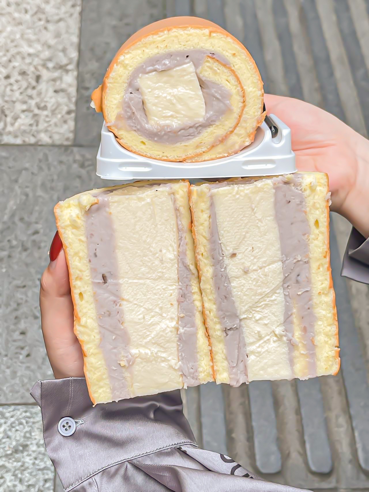 又大又duamg! 芋泥控一定要试试😍嫩滑的蛋糕🍰包裹着细腻绵软的芋泥,中间还有超大的奶冻,一口下去太满足了👅!