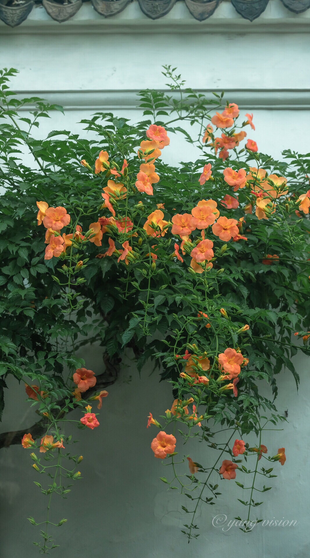 【网师园,中国凌霄】中国凌霄,花大色浅颜值较高,与苏州园林相搭更为雅致…