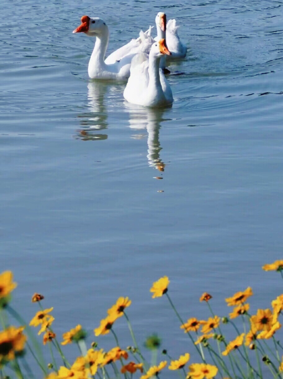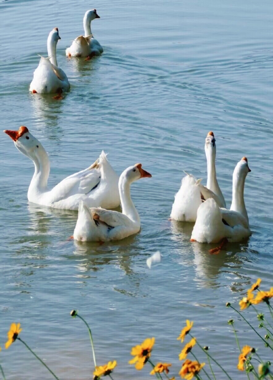鹅 鹅 鹅 曲项向天歌 白毛浮绿水 红掌拨清波