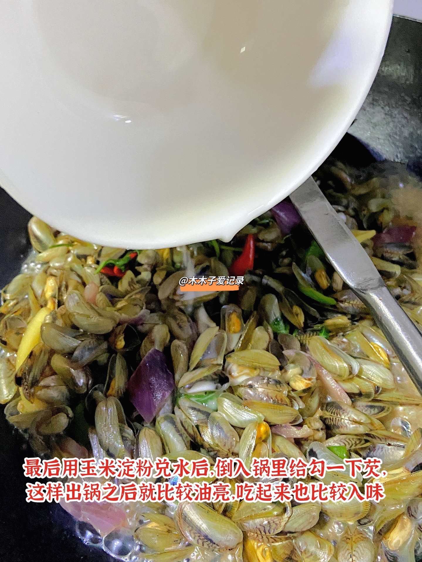 炒薄壳是一道快手菜,火可以开大一点,炒到壳一开就已经熟了,整个过程差不多三四分钟,因为炒太久会降低薄壳原本的鲜甜度。
