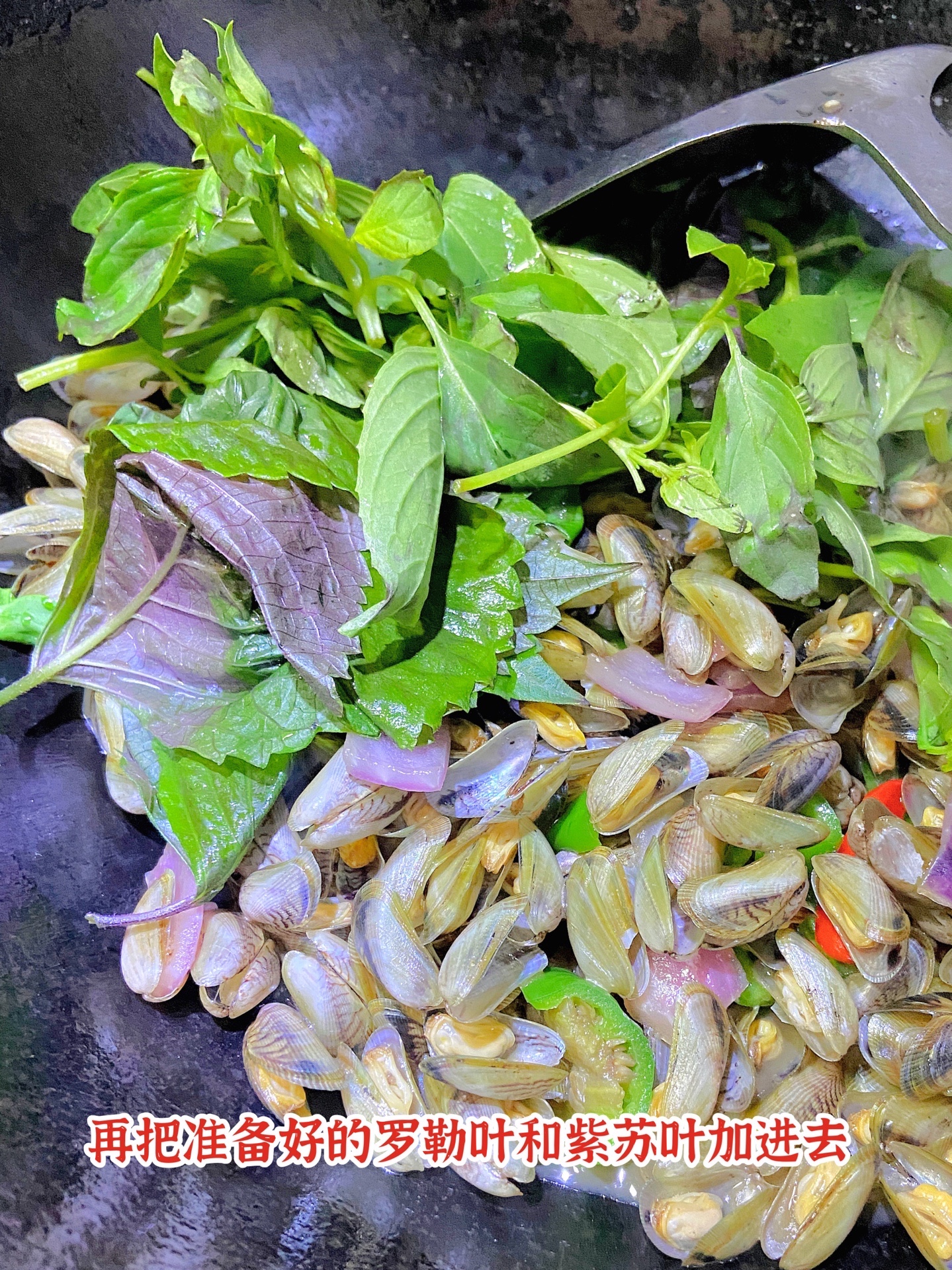 先把薄壳清水洗干净备用,把热锅热油先把姜片、青红椒、洋葱爆香,再把薄壳薄壳加进去大火翻炒几下,下入盐、蚝油、酱油再把金不换叶和紫苏叶放进去翻炒几下就可以出锅了,如果想炒出来油亮一点除了放多点油外,可以在出锅前用少许淀粉兑水勾一下芡。