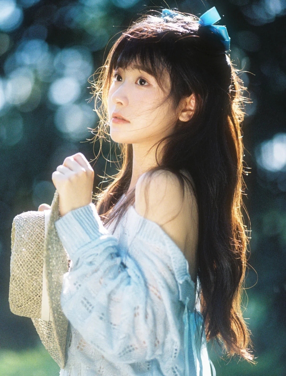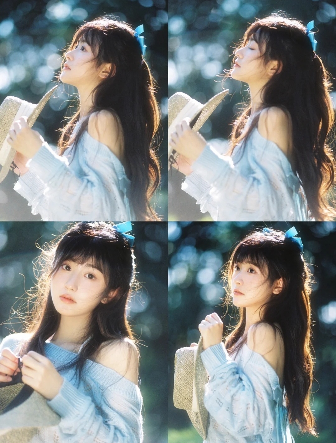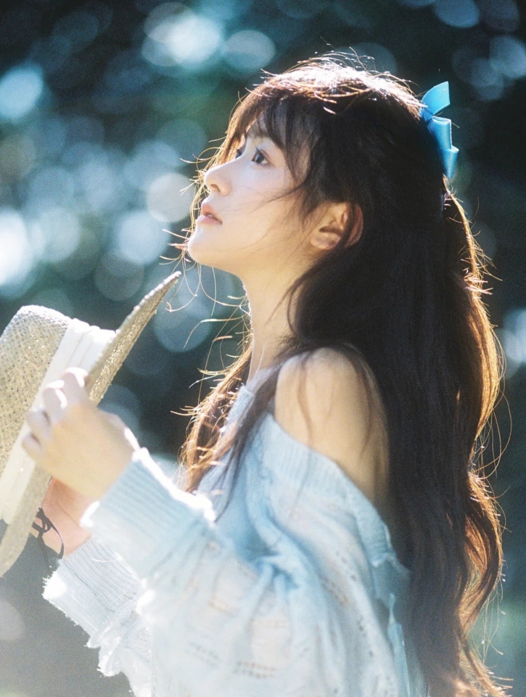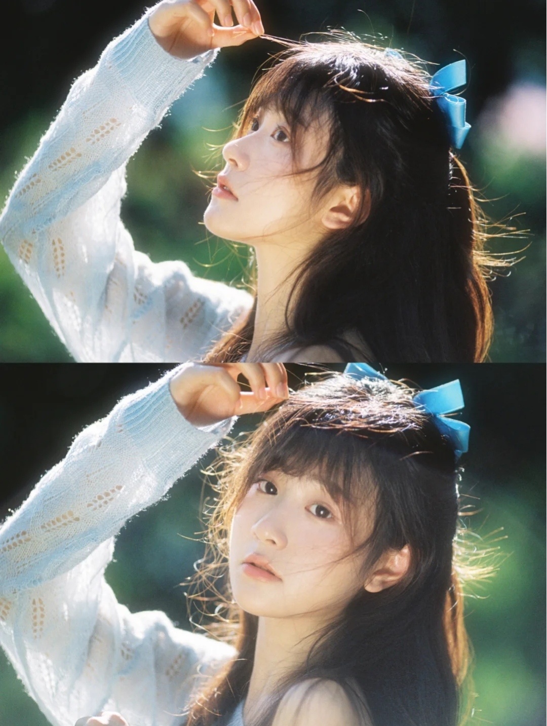 🍒前期需要先让头发蓬松起来 可以卷一下头发 逆光下(照片是三点左右拍的)头发丝就可以闪闪发光浅色一些头发会更明显 图片头发是黑茶色