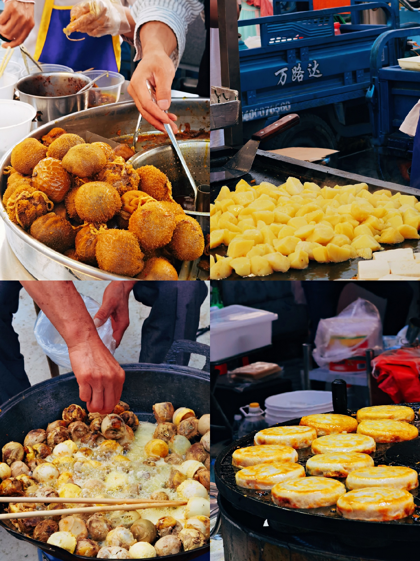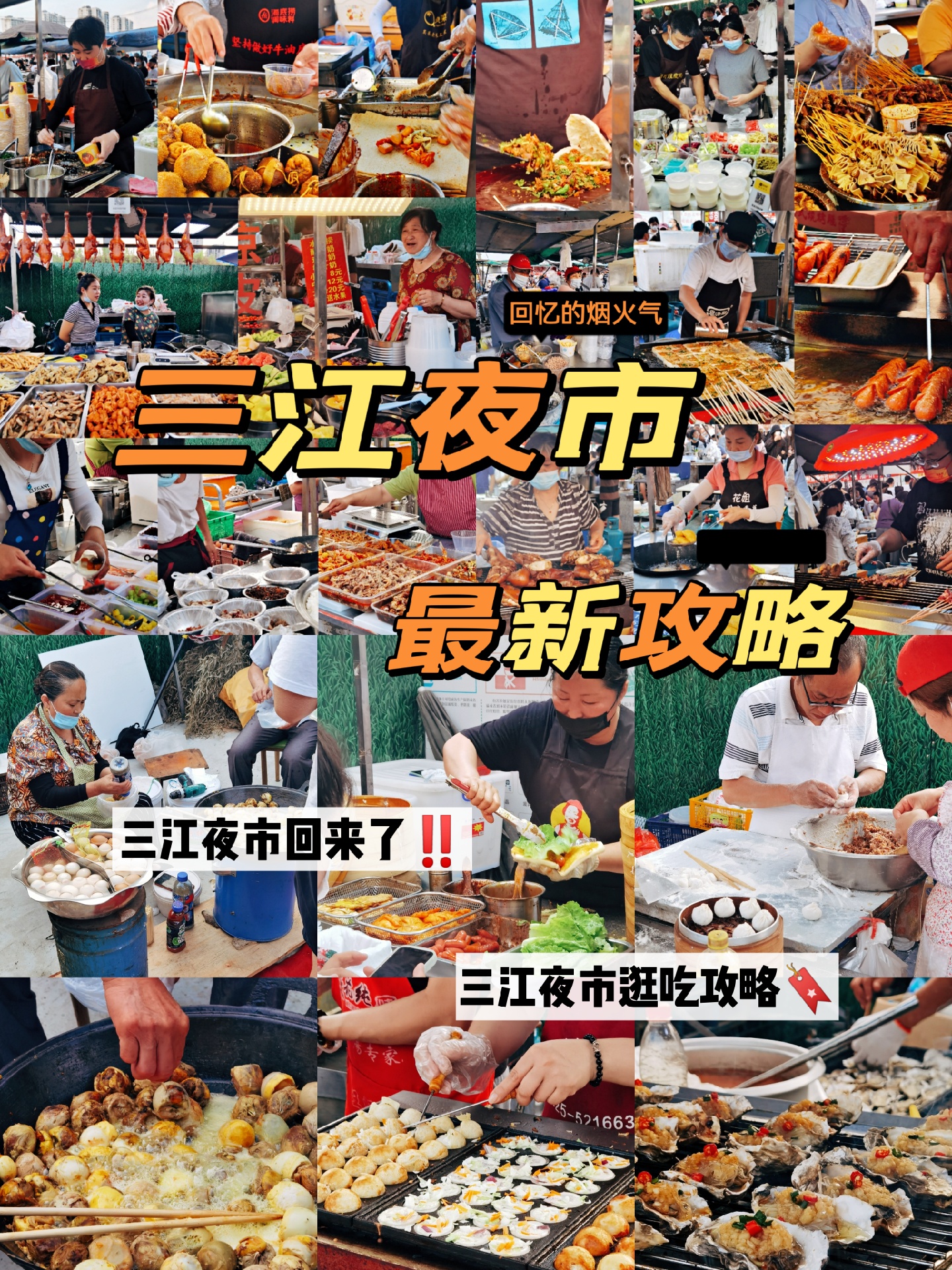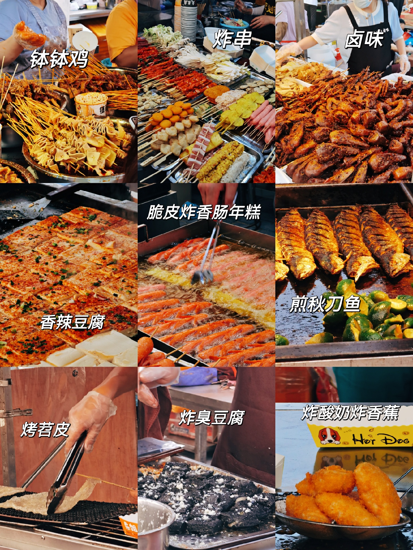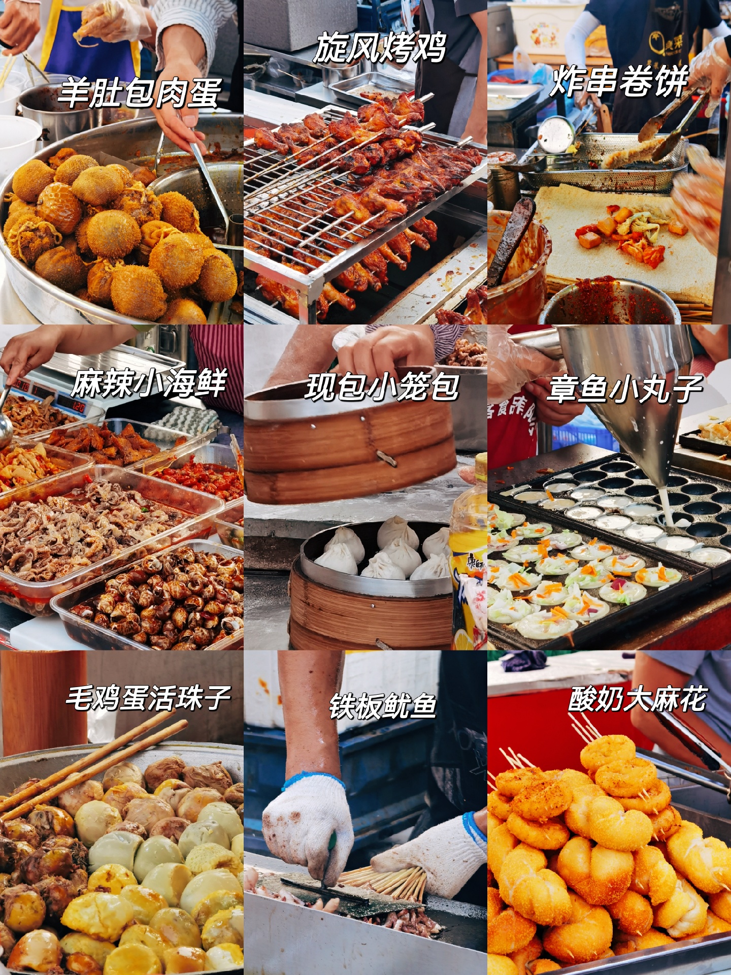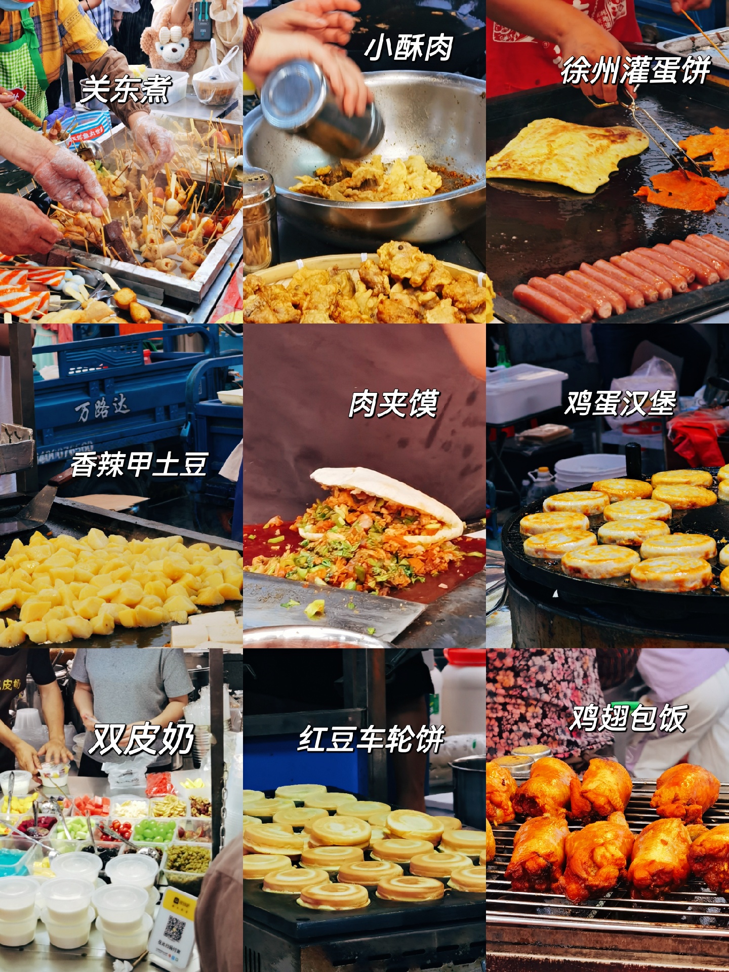 🌙郭阿姨月亮馍,刚哥双皮奶🥥,花姐炸香蕉🍌,炸串卷饼🌯,高淳灌汤臭豆腐🥙,炒饭炒面炒凉皮🍛,羊肉串🍢,麻辣小海鲜🍤,毛鸡蛋活珠子🍥,钵钵鸡,绿豆汤,河仔煎,养生粥,旋风烤鸡,肉夹馍🌮真的都回来了‼️