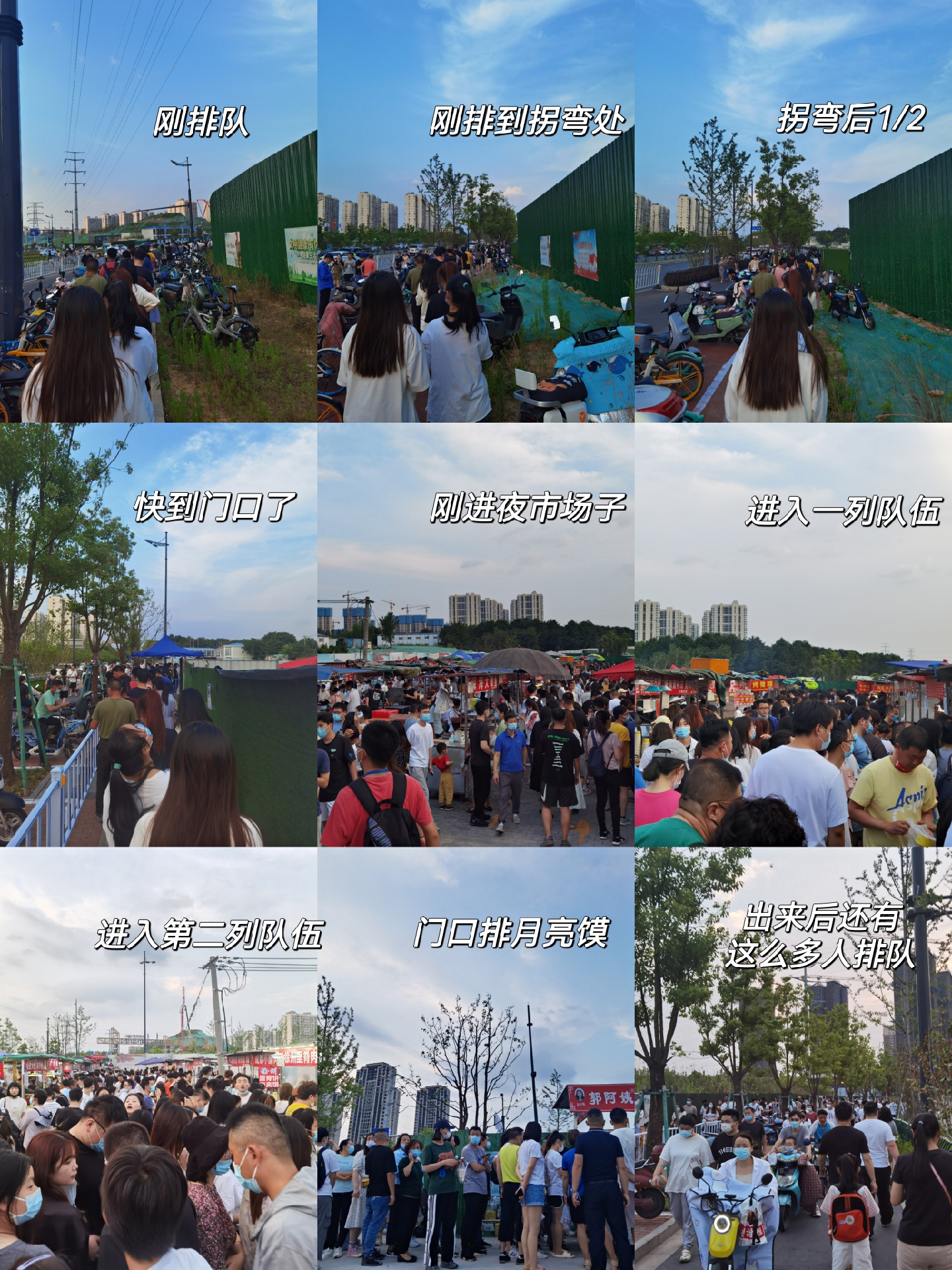 1⃣排队:刚开的这几天人气特别足,萌萌是从机场二通道开始排,拐弯后上龙西路,需要扫场所码进入,别看人多,大约10分钟进夜市;