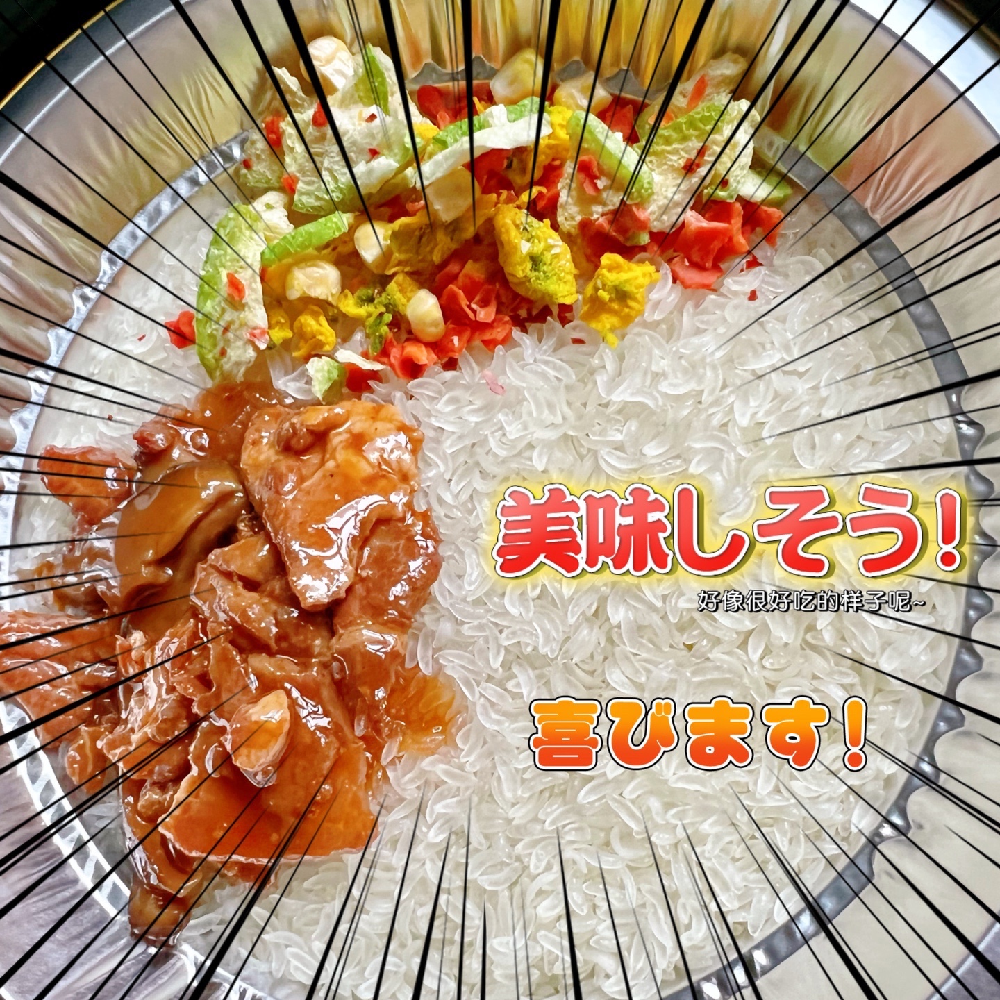 配上蔬菜🥬包,肉肉一起加热十五分钟,待加热完成将酱料包一放那简直是YYDS。香味扑面而来,味蕾已经开始不由自足的期待😚拌一拌大快朵颐吃进肚里,不到三分钟我已经全部下肚😋真的太好吃啦😍😍