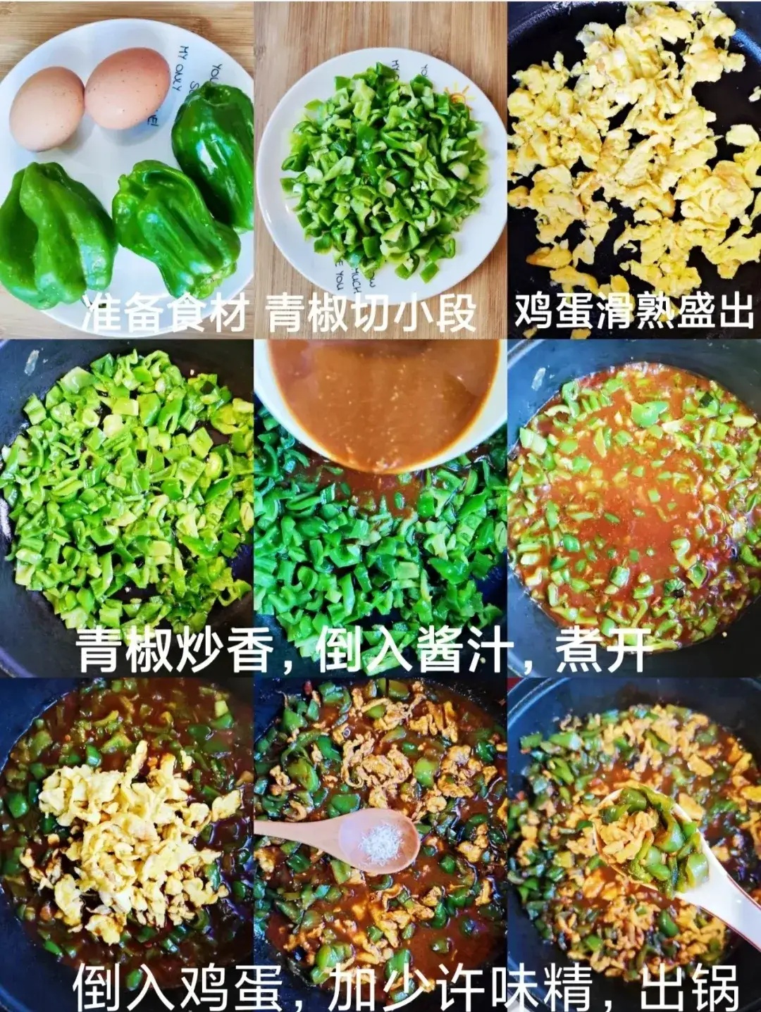 青椒3个、鸡蛋2个、黄豆酱