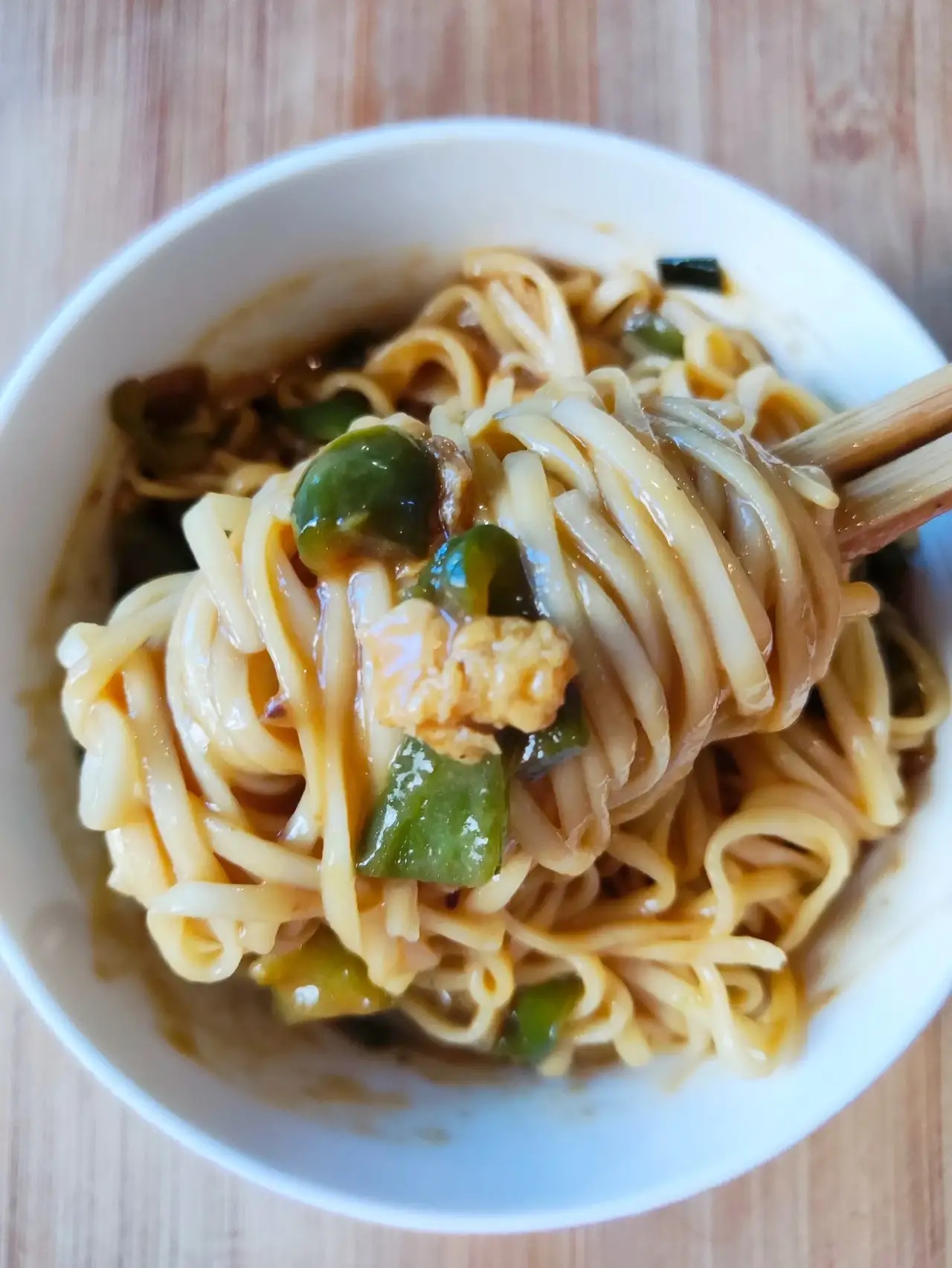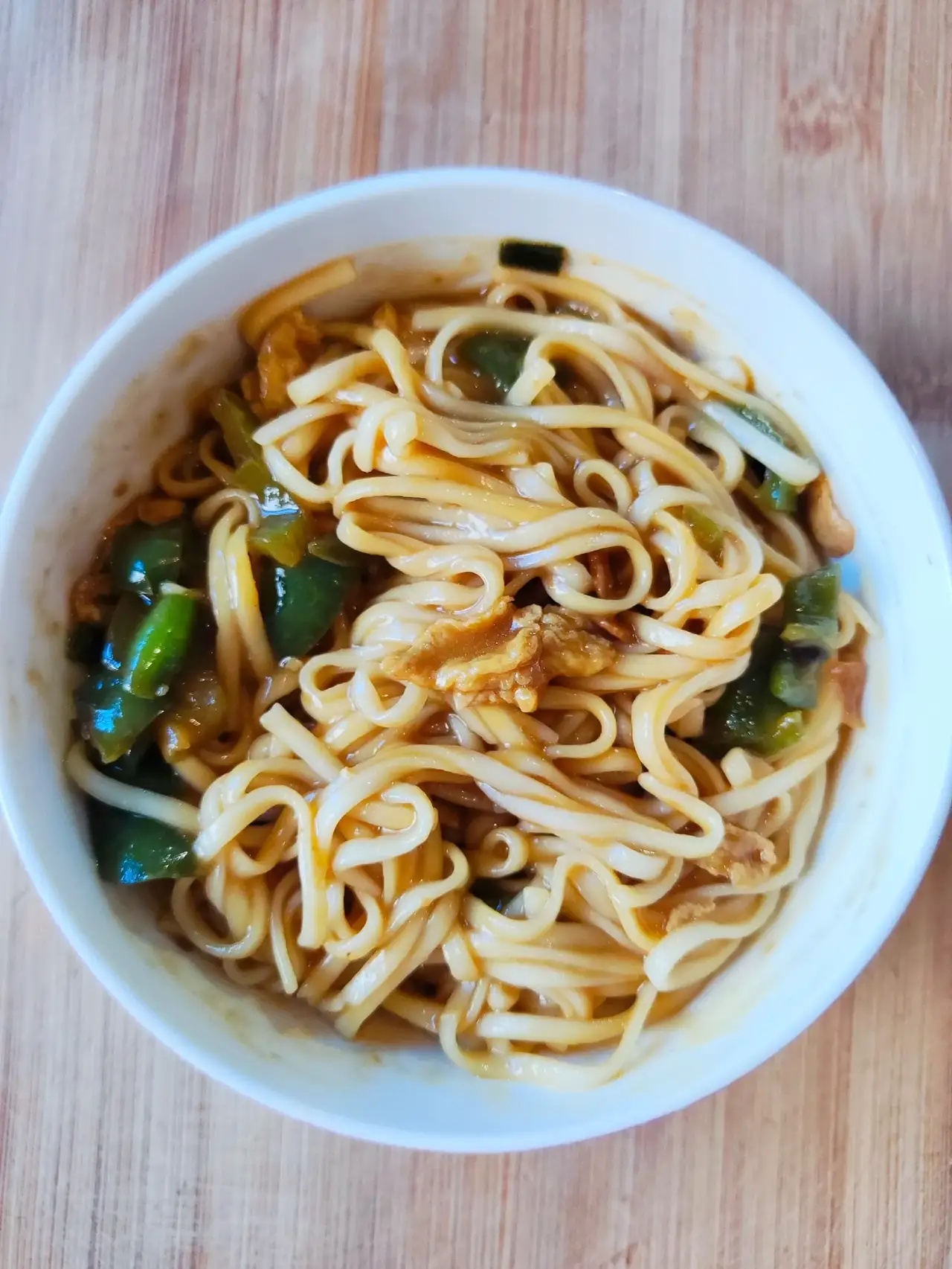 今天早上做了青椒鸡蛋酱拌面,酱汁浓郁,香辣过瘾。面条裹满了酱汁,好吃到舔盘。做法简单,喜欢的试试。