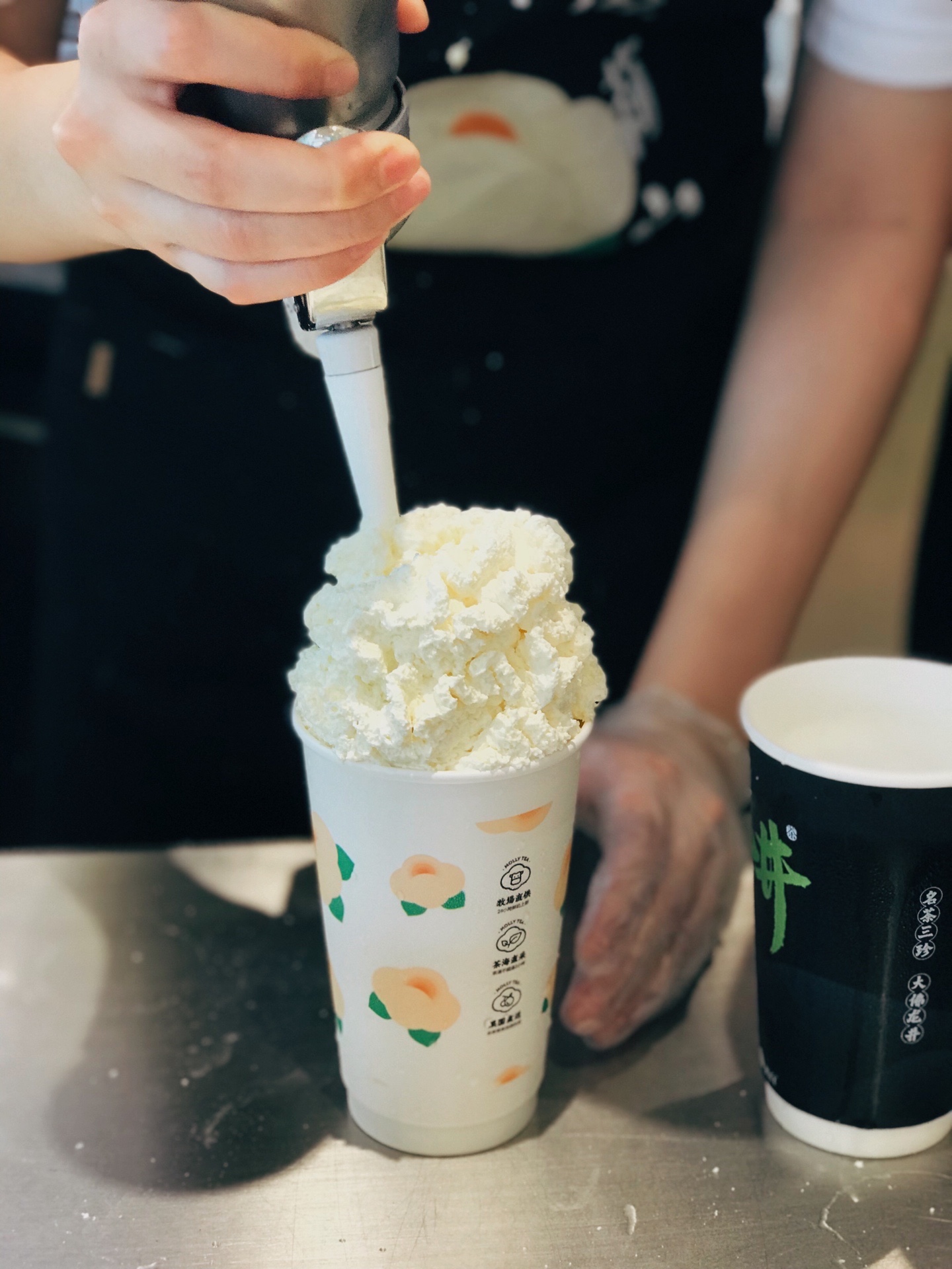 高!而且上面层的奶油,是叠加的,满满奶油,使用的是安佳奶油,很新鲜,一口奶油,爽,再喝一口,满满的茉莉花香,想把茉莉花香停留在味蕾上!
