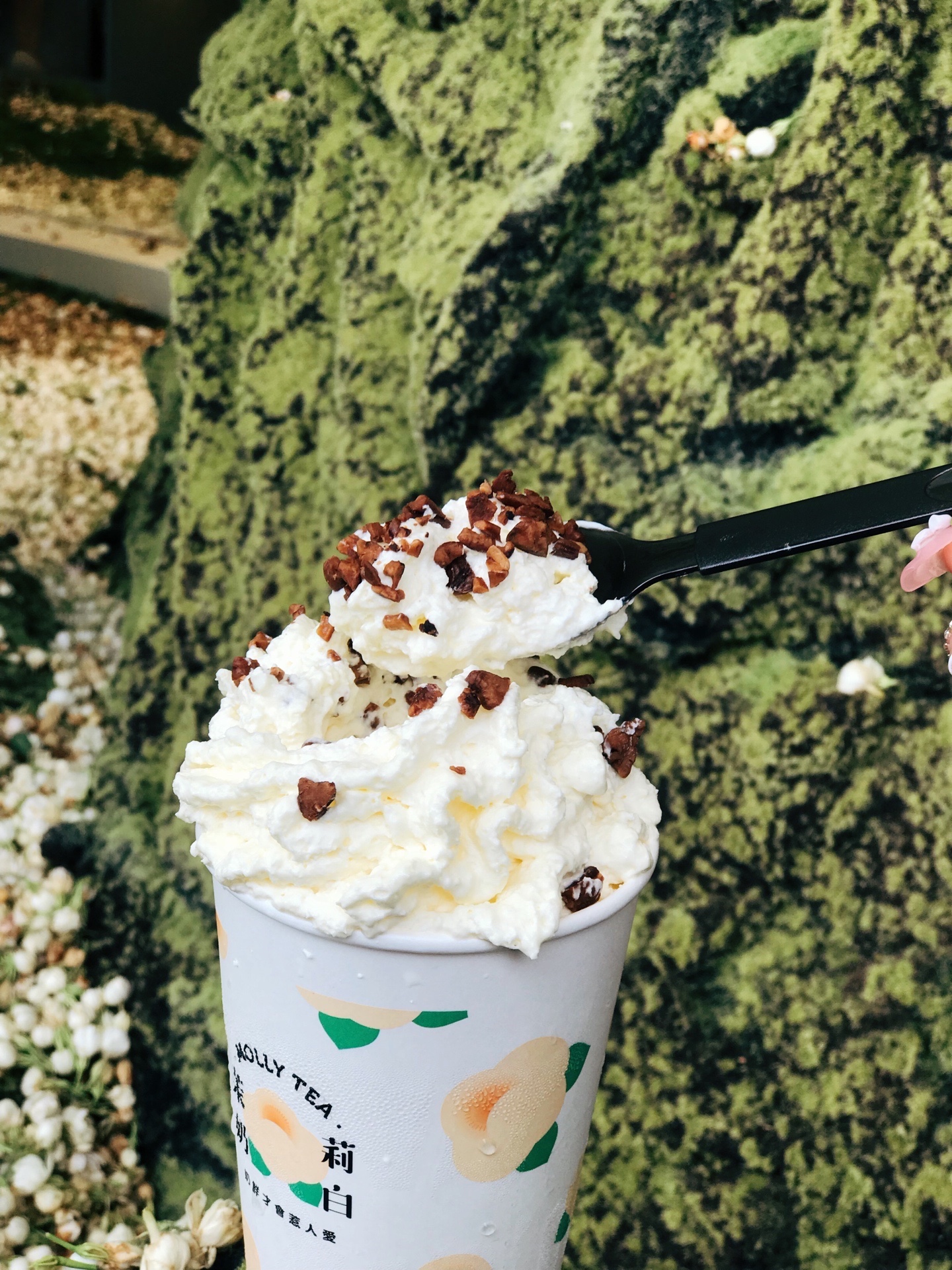 茉莉奶白相信没有人不爱,喝了停不下来,这次茉莉奶白放大招了,云顶忌廉升级了,携手安佳,让大家更流连忘返了哈!而且深圳的6月,下雪了!是茉莉奶白云顶带来的,线下的雪景是用百斤真花的,是茉莉和栀子花香,一边喝奶茶,一边闻着花香,好享受!门口还有大玩偶,拍照📷好看!