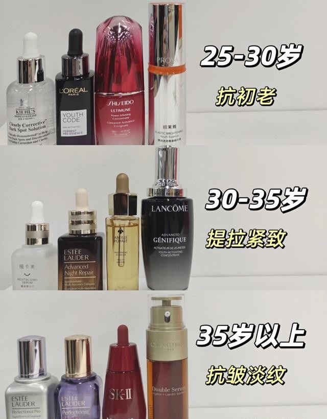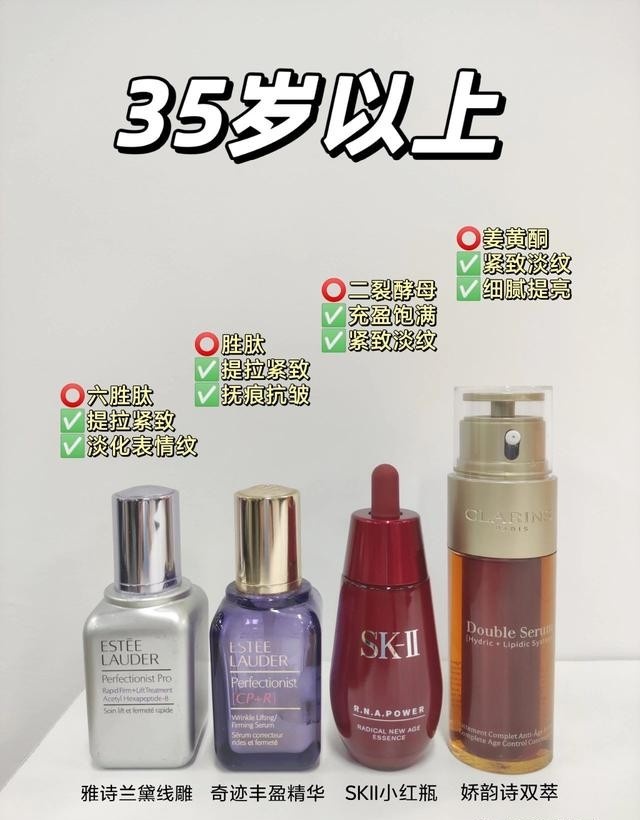 🔹抗老精华推荐:雅诗兰黛线雕精华、雅诗兰黛奇迹精华、SKII小红瓶、娇韵诗双萃