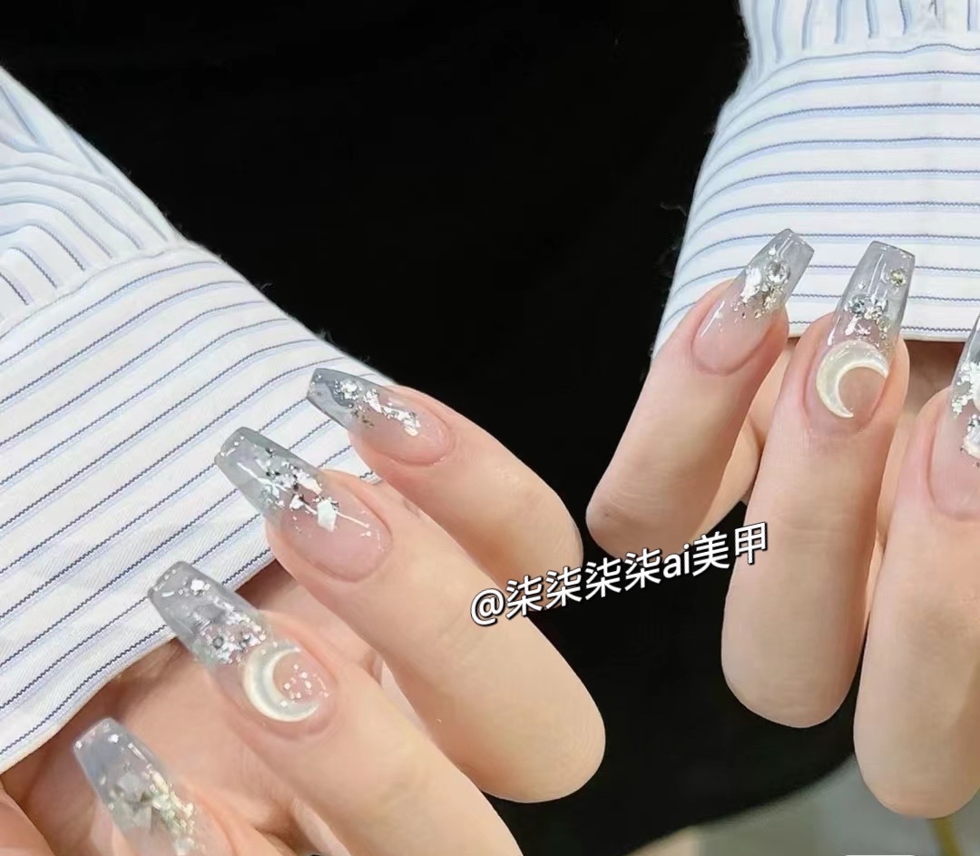 #美甲分享 白月光美甲 渐变钻钻美甲