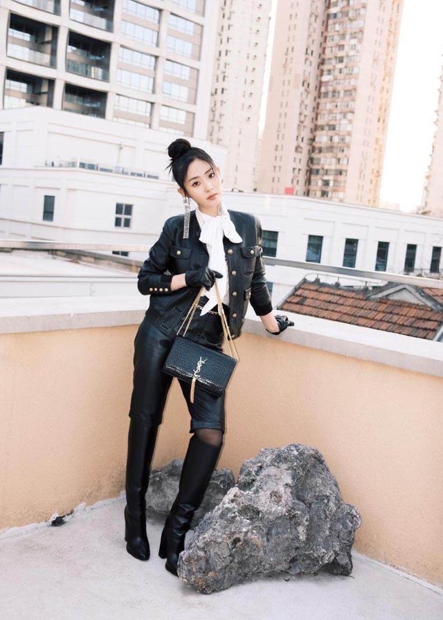 小个子快来跟邢菲学穿搭!丝袜、长靴都上身,显瘦还显高。邢菲这身穿搭是使用衬衫搭配皮衣、皮裤打造的,皮质短裤不算常见,上身后可以给人带来强烈的视觉冲击力。