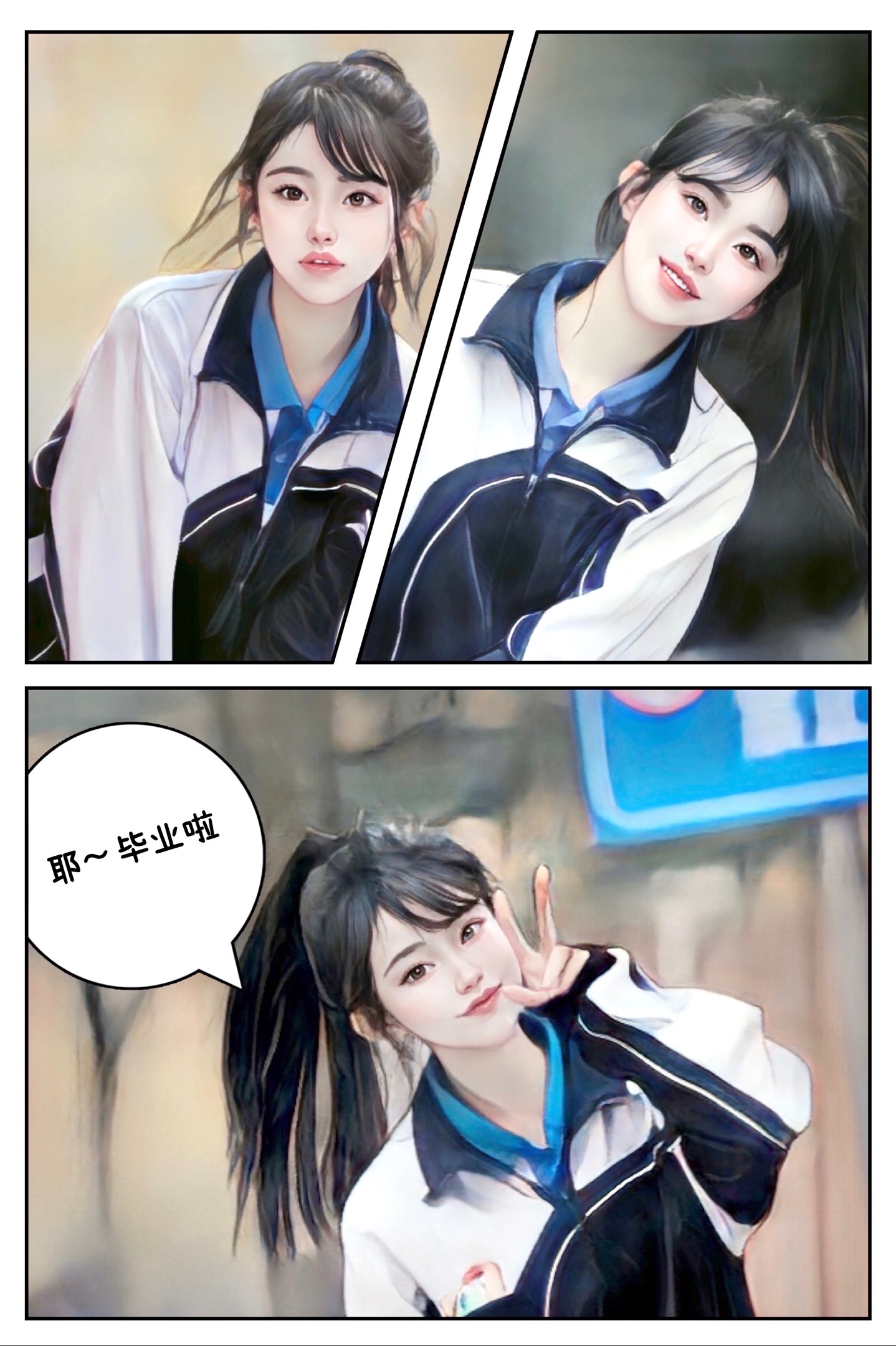 用美颜相机倒入校服照片 用撕漫脸效果 就可以一键生成啦!