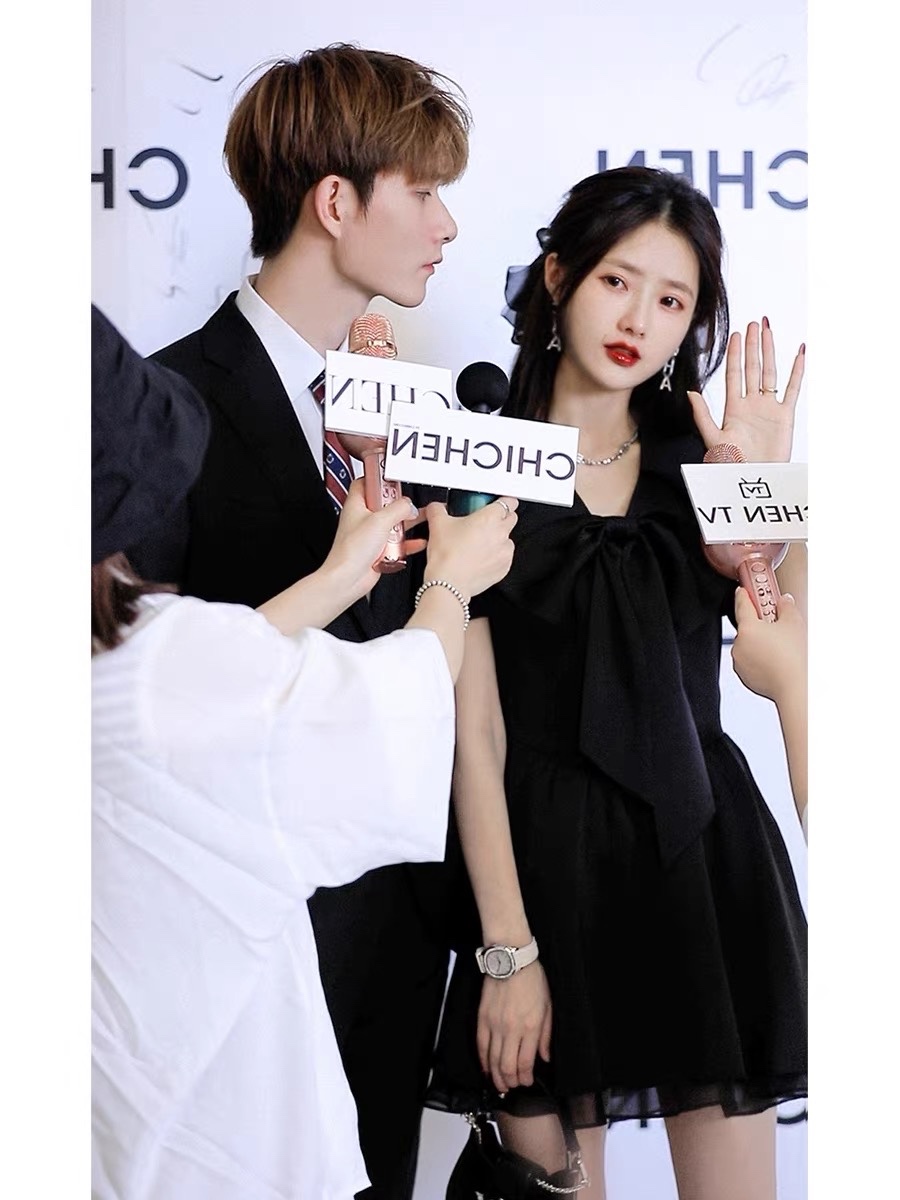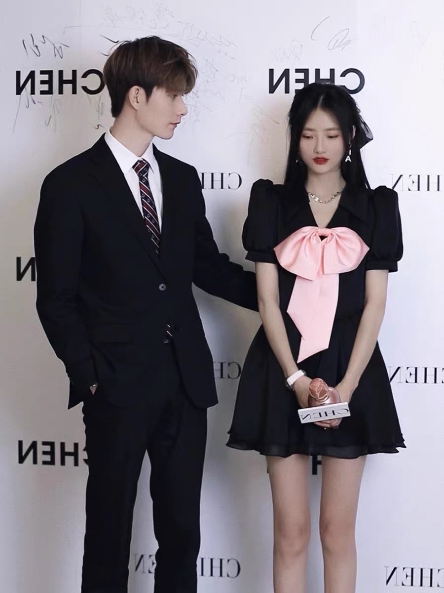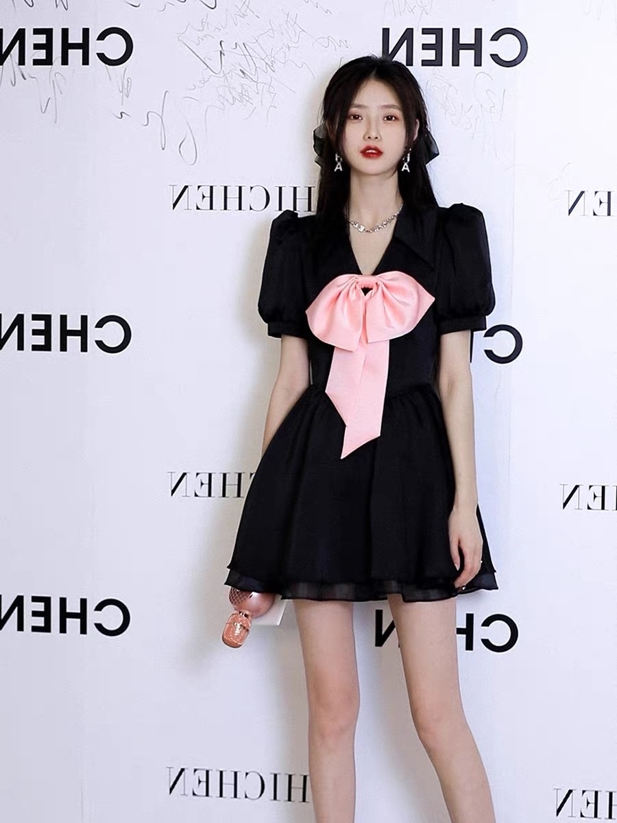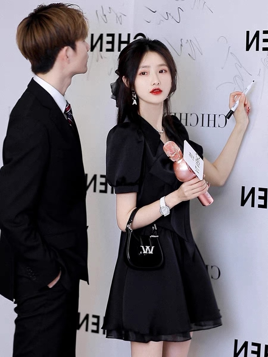 法式黑色泡泡袖连衣裙