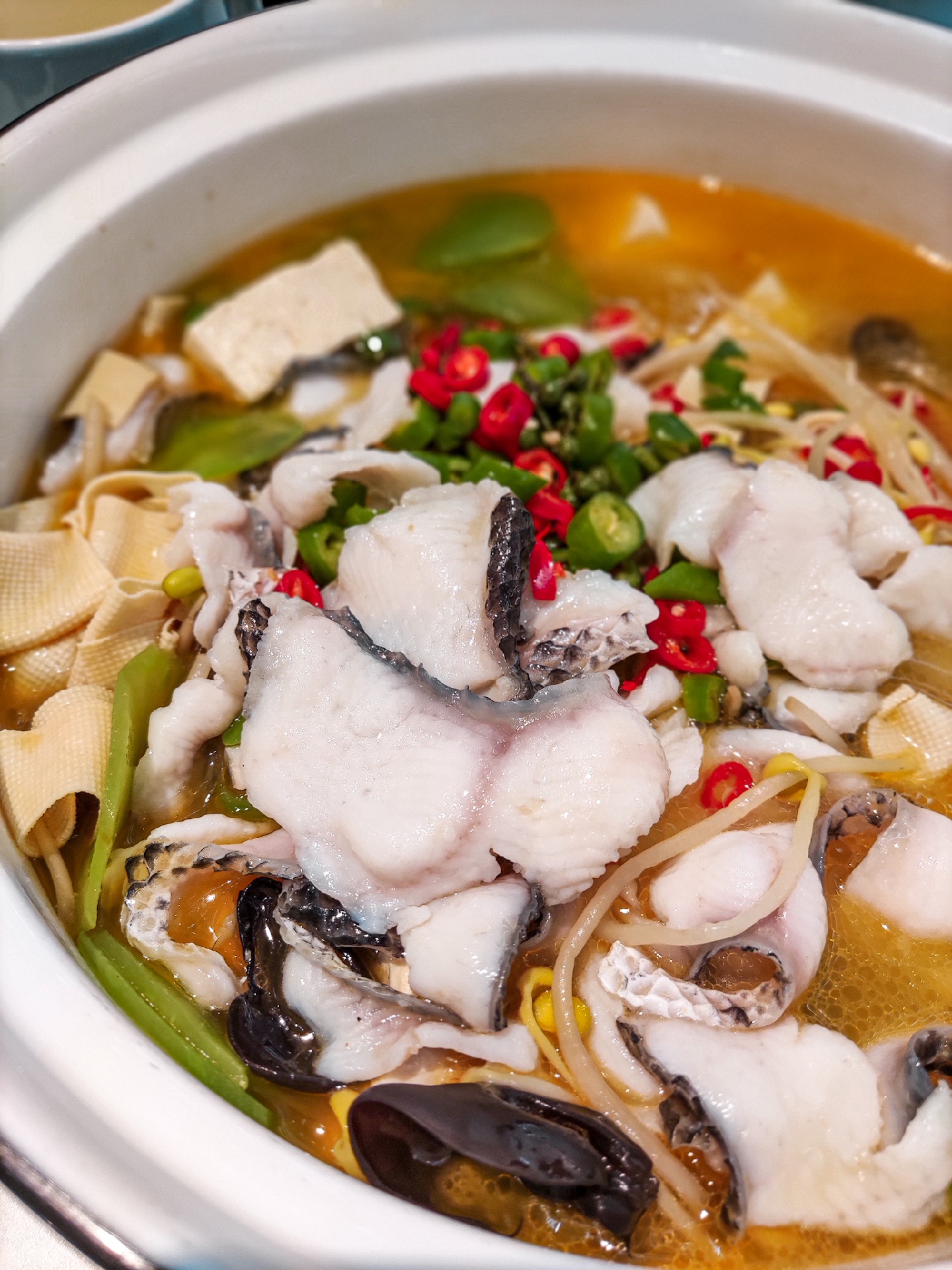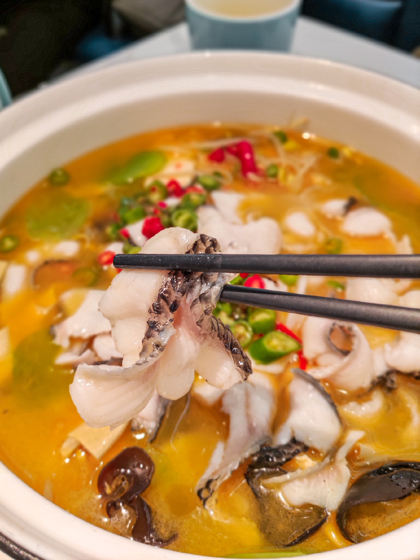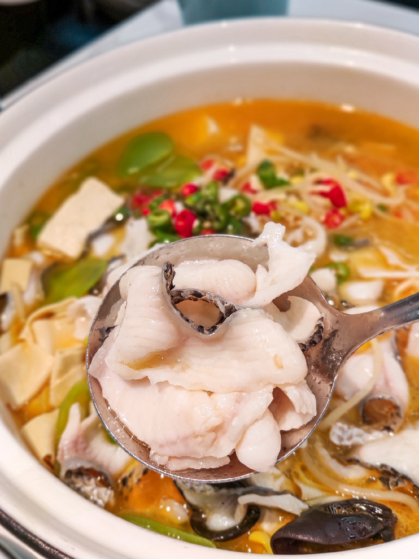 招牌青花椒鱼:口味可以选择正常或者加麻加辣,喜欢重口味的可以选加麻加辣哦。正常的我感觉味道已经很🉑了。又麻又香,稍微带点辣味。锅底的三种配菜是赠送的哦,还有2元的不限量自助茶水和米饭随便喝随便吃,真的是太划算了。他家的鱼最主要的是要喝汤,味道简直太棒了,而且汤泡米饭吃更是一绝。