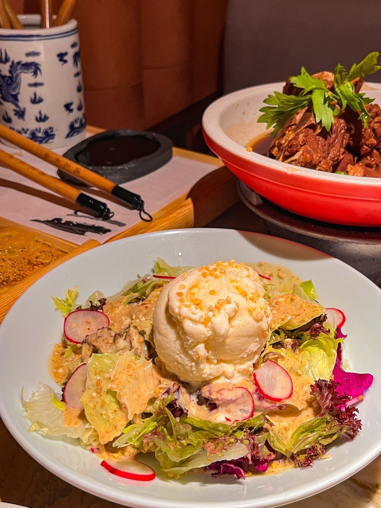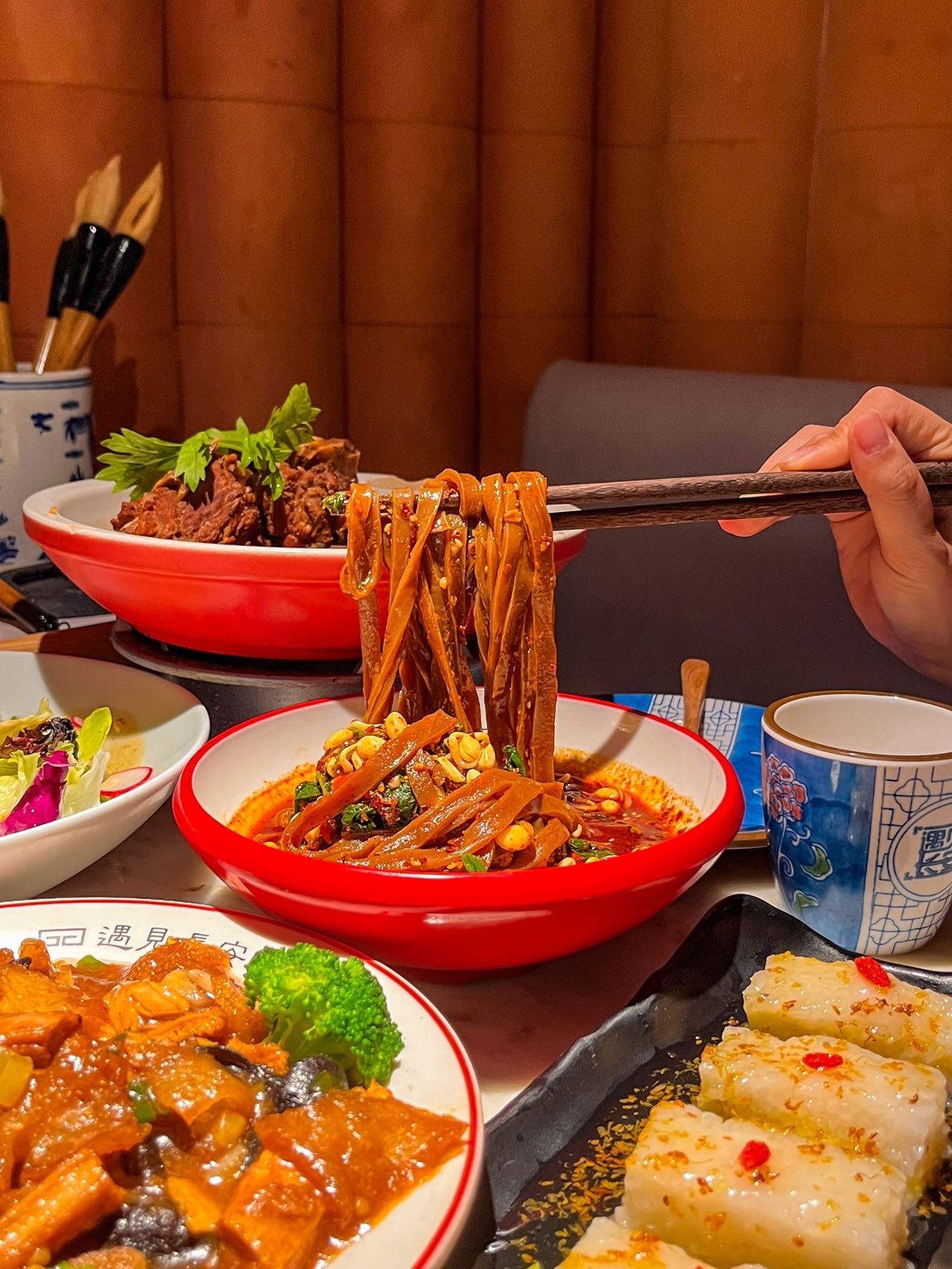 店里古色古香的风格特别有陕菜的风味,古风木桌,红灯笼和小庭院,有种坐在庭院园林吃饭的感觉