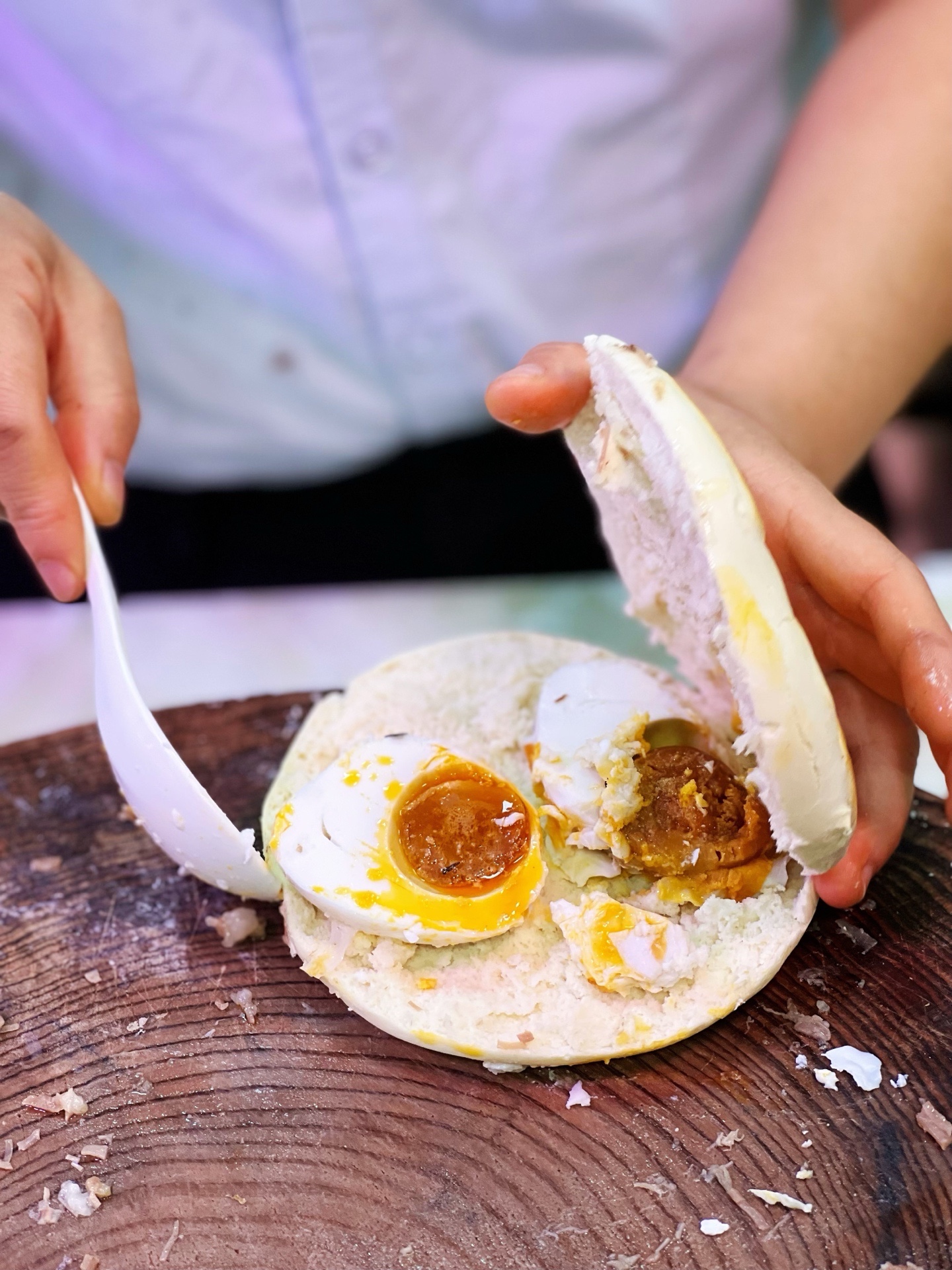 他家胡辣汤肉丸特别多,配菜也丰富,满满当当一大碗,舀上一勺油泼辣子,再将馍撕成小块儿,让糊辣汤的麻香和油泼辣子的辛香,包裹着每一块馍,每一口都是满足😍腊牛肉夹馍也是标配,馍厚肉足,分量惊人!一大块牛肉,全部剁碎夹进馍里,咸香入味、肉质软烂,咬上一口就是个香👍还有咸鸭蛋,抹上厚厚的一层油泼辣子,绝对爱了!现烙葱油饼,酥脆可口,葱香四溢,热气腾腾又香喷喷的美味谁能不爱‼️明天早起来吃个胡辣汤吧。地址:公园南路鑫龙天然居