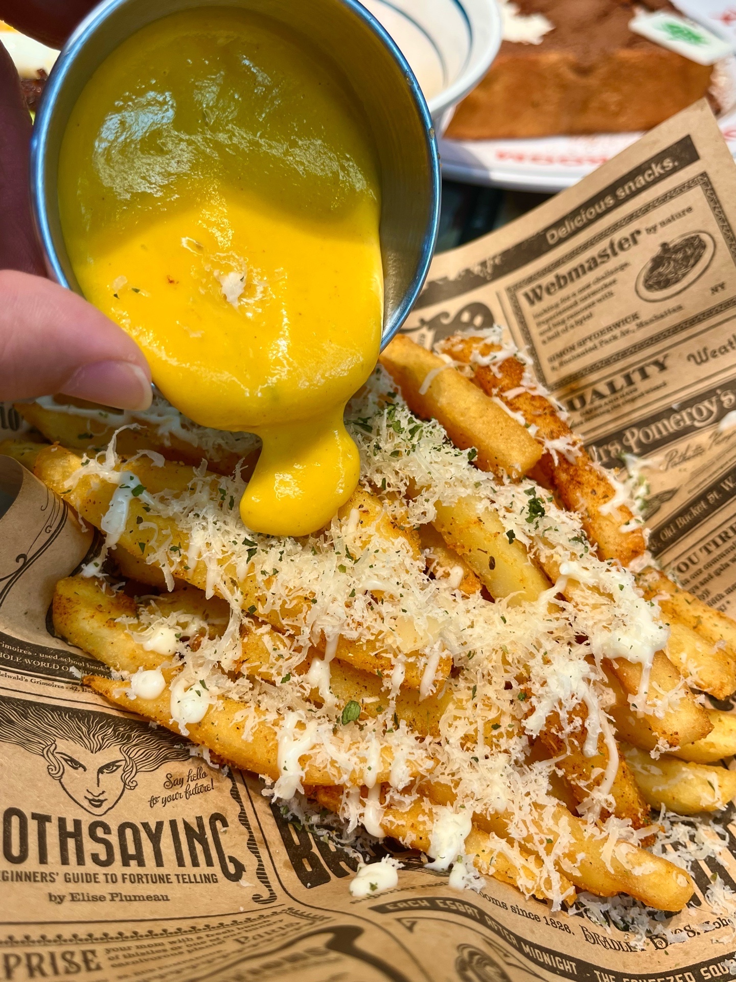 芝士的香味可真诱人!🧀芝士碎➕芝士酱,双重芝士搭配酥脆薯条!不过瘾就把芝士酱倒进去吧🫕