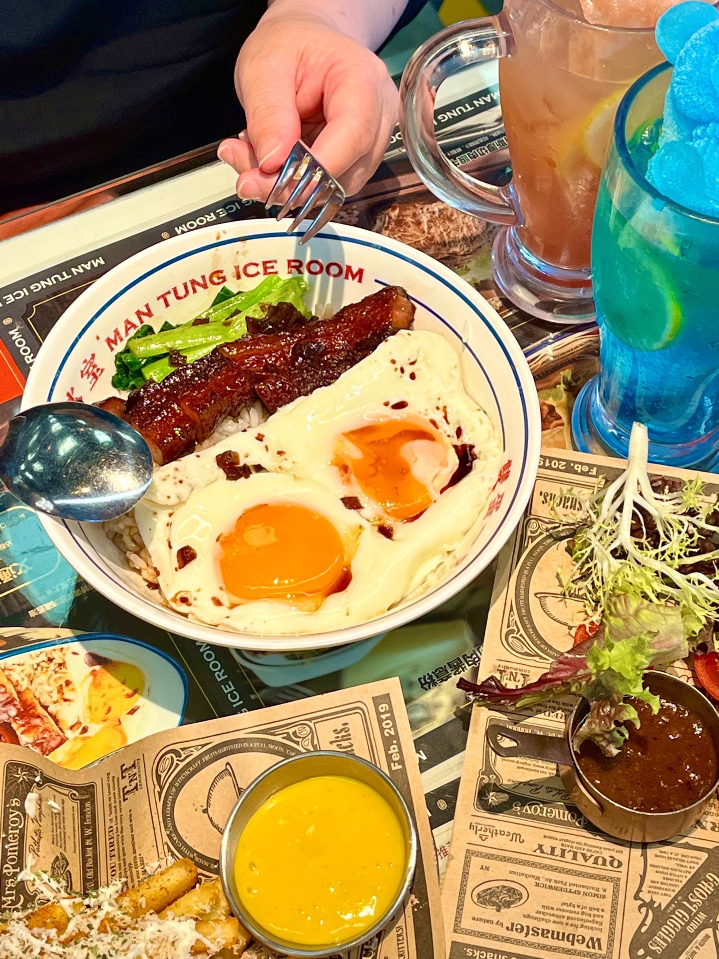 爆浆流心双太阳蛋!🍳在吃之前将它和叉烧、米饭拌匀,