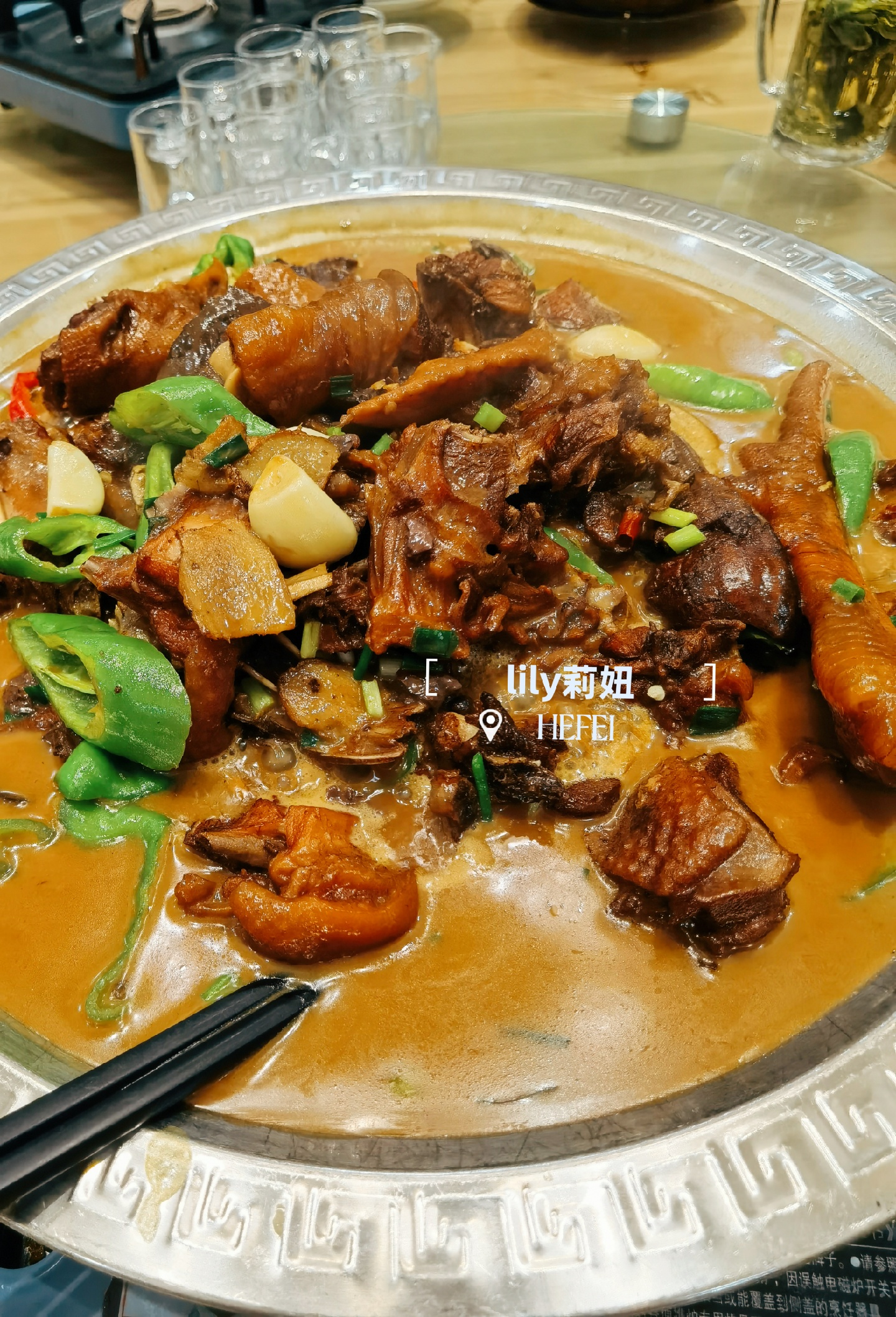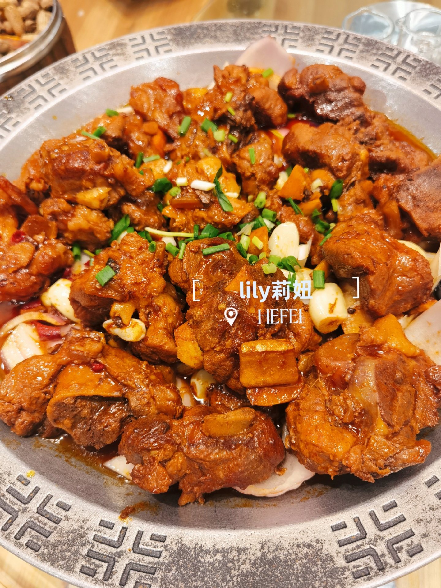 鸡公煲特别入味,皮嫩滑肉耙烂,满满一锅胶原蛋白。肉吃得差不多老板会上一锅腊肉饭,锅巴金黄酥脆,把鸡汁往上面一浇一拌,这个口感,绝了!只知道东北的酱大骨好吃,其实合肥的酱排骨也不错,酥烂入味,咸香口,但是对于一个云南人来说,还是偏咸啦!