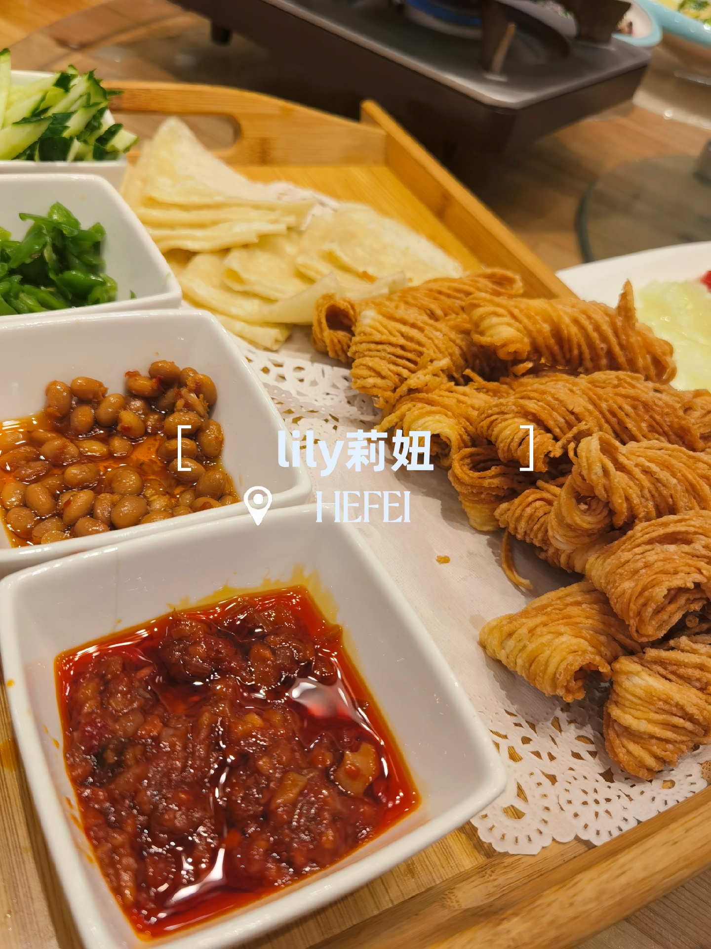 馓子是首次吃,听说是皖北特产,口感有点像麻花,面比较细,炸得很香。用饼皮卷上,加点青椒丝黄瓜条,灵&魂是豆豉和酱料,吃法有点像烤鸭卷饼,饼皮柔韧馓子香脆豆豉咸鲜,相当不错。