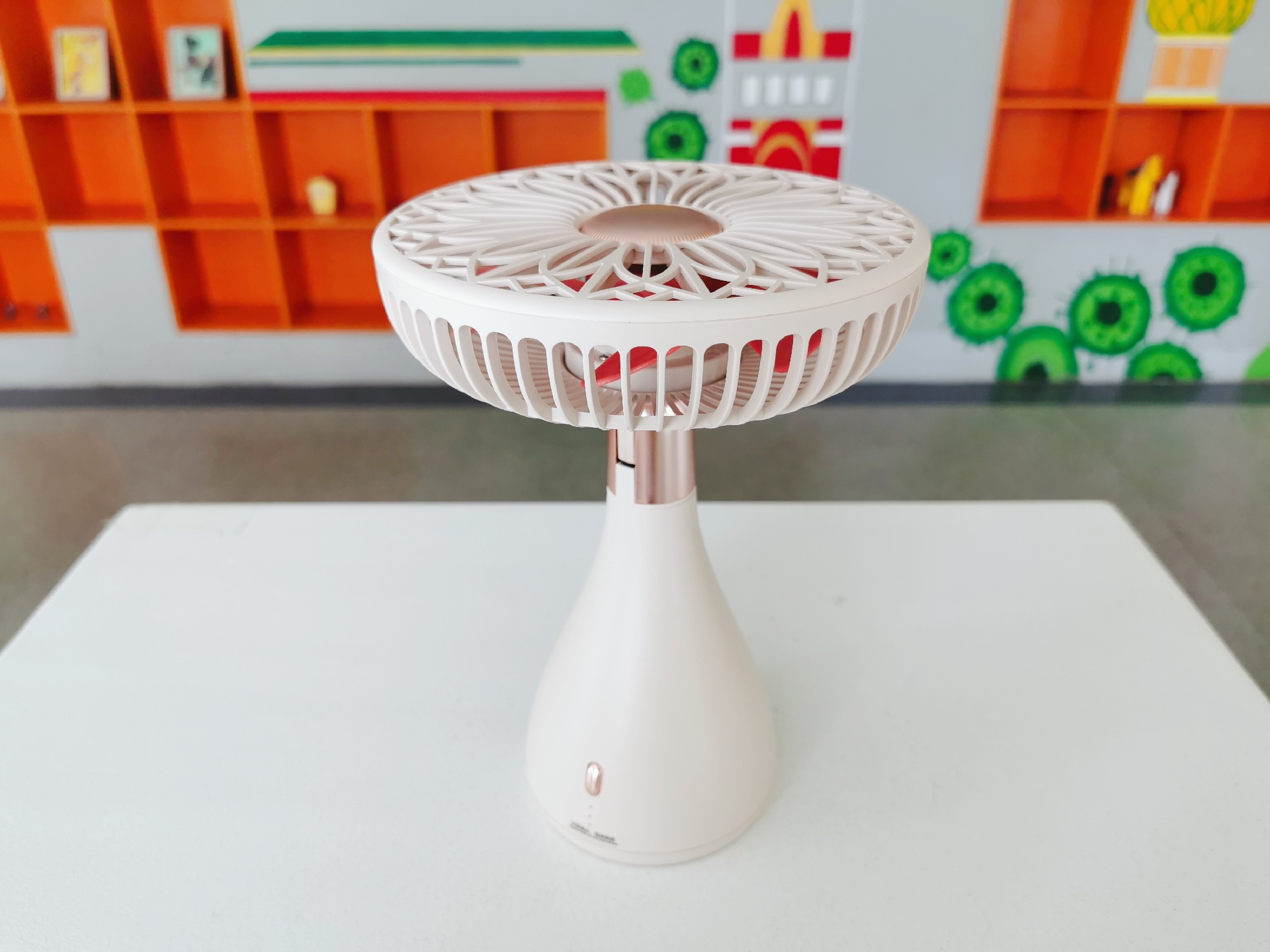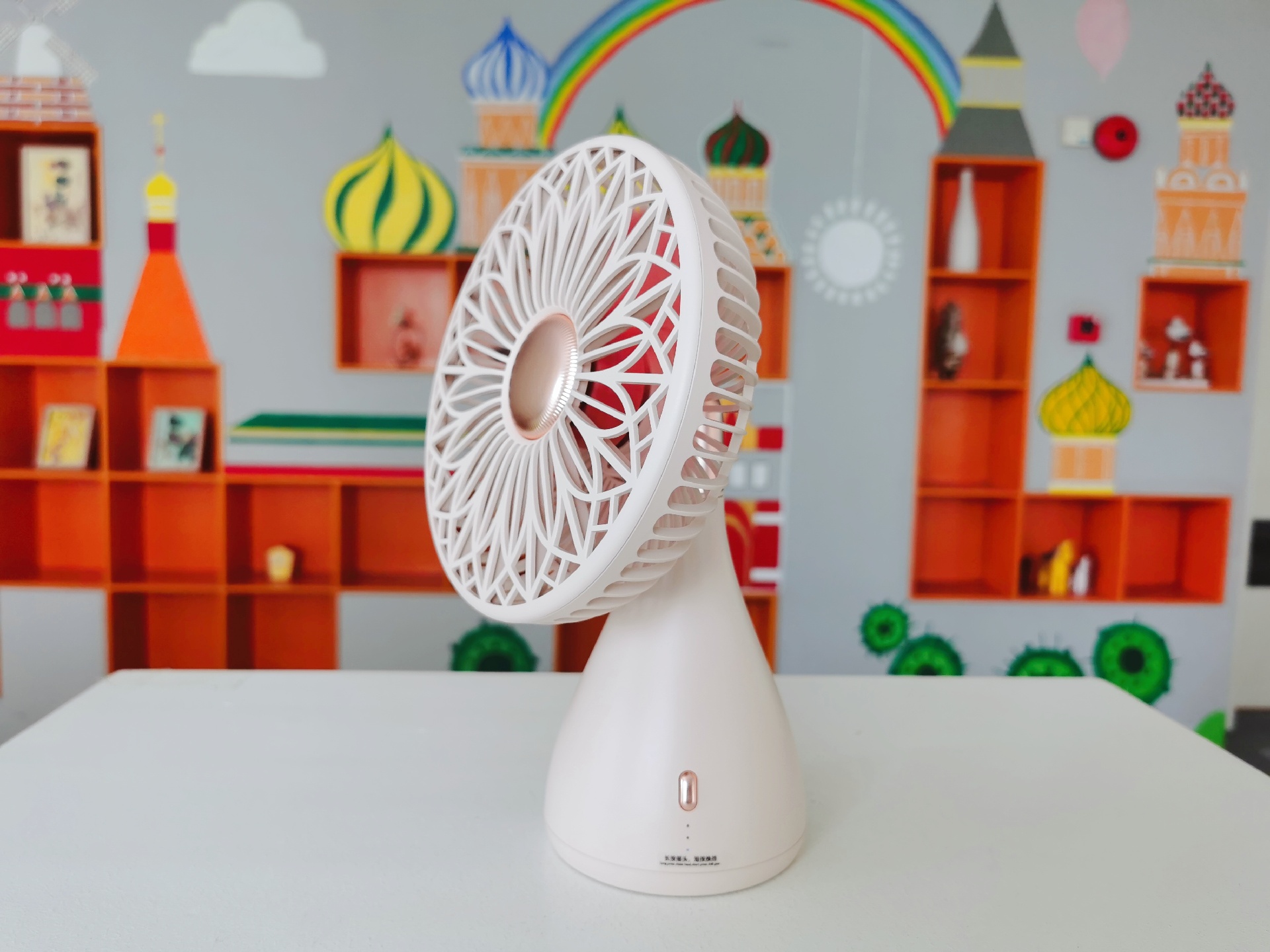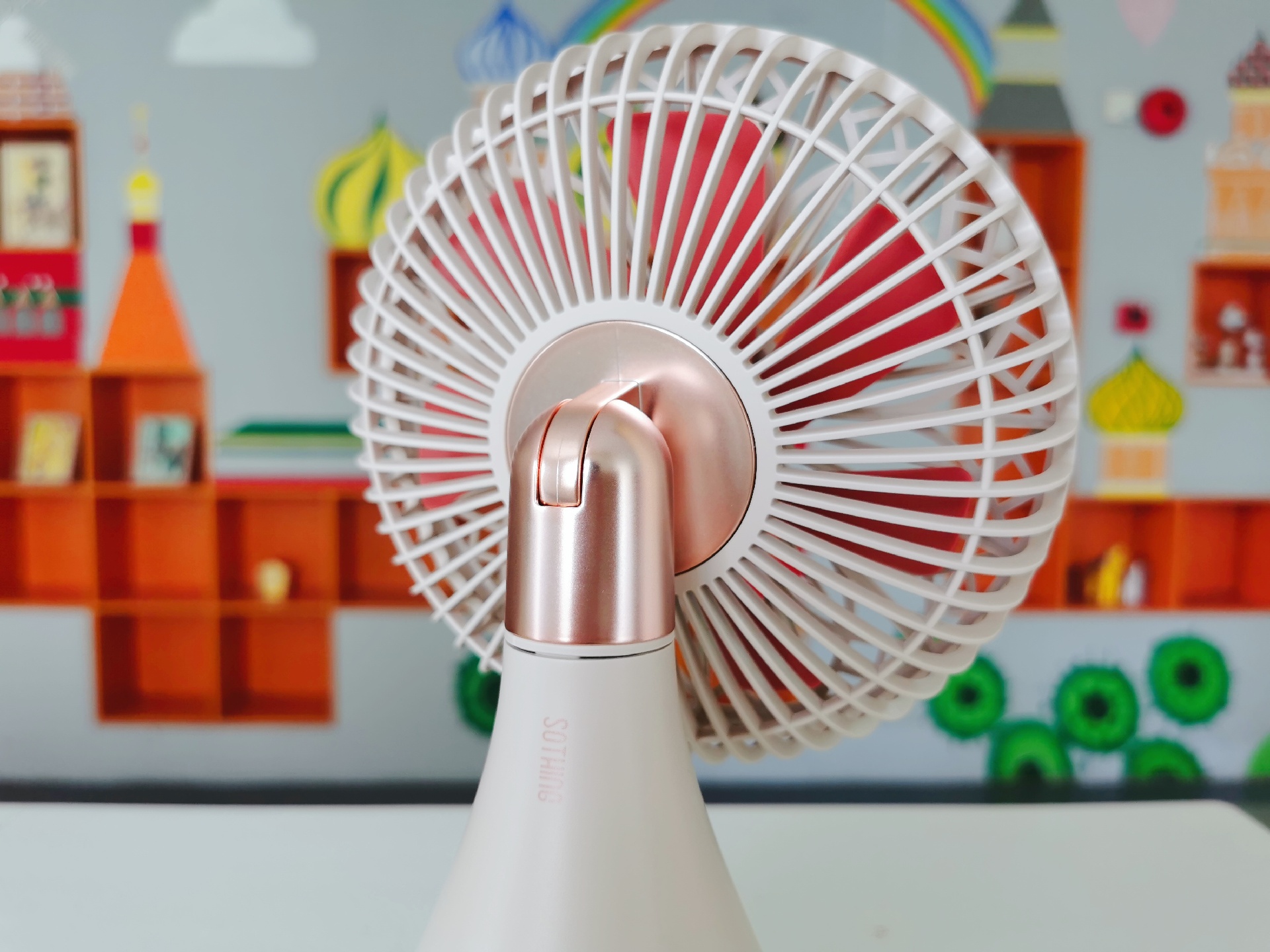 典雅简约的杏白色环保材质机身,别致复古的花纹,搭配金属色系的按键点缀,可盐可甜的精致造型,轻轻一提,满足任何场景的需求,随时随地享受自然风,就算是放置在办公桌面的一个角落,摆着也不占地方,完全能满足你对桌面风扇的所有美好幻想!