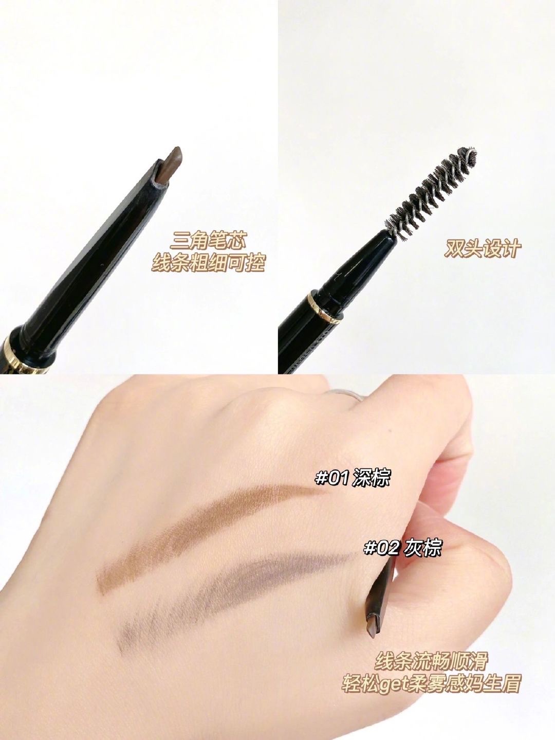 -笔芯软硬适中 显色均匀 顺滑流畅 轻松告别蜡笔小新眉 -防水耐汗 夏天也不用担心晕染和脱妆