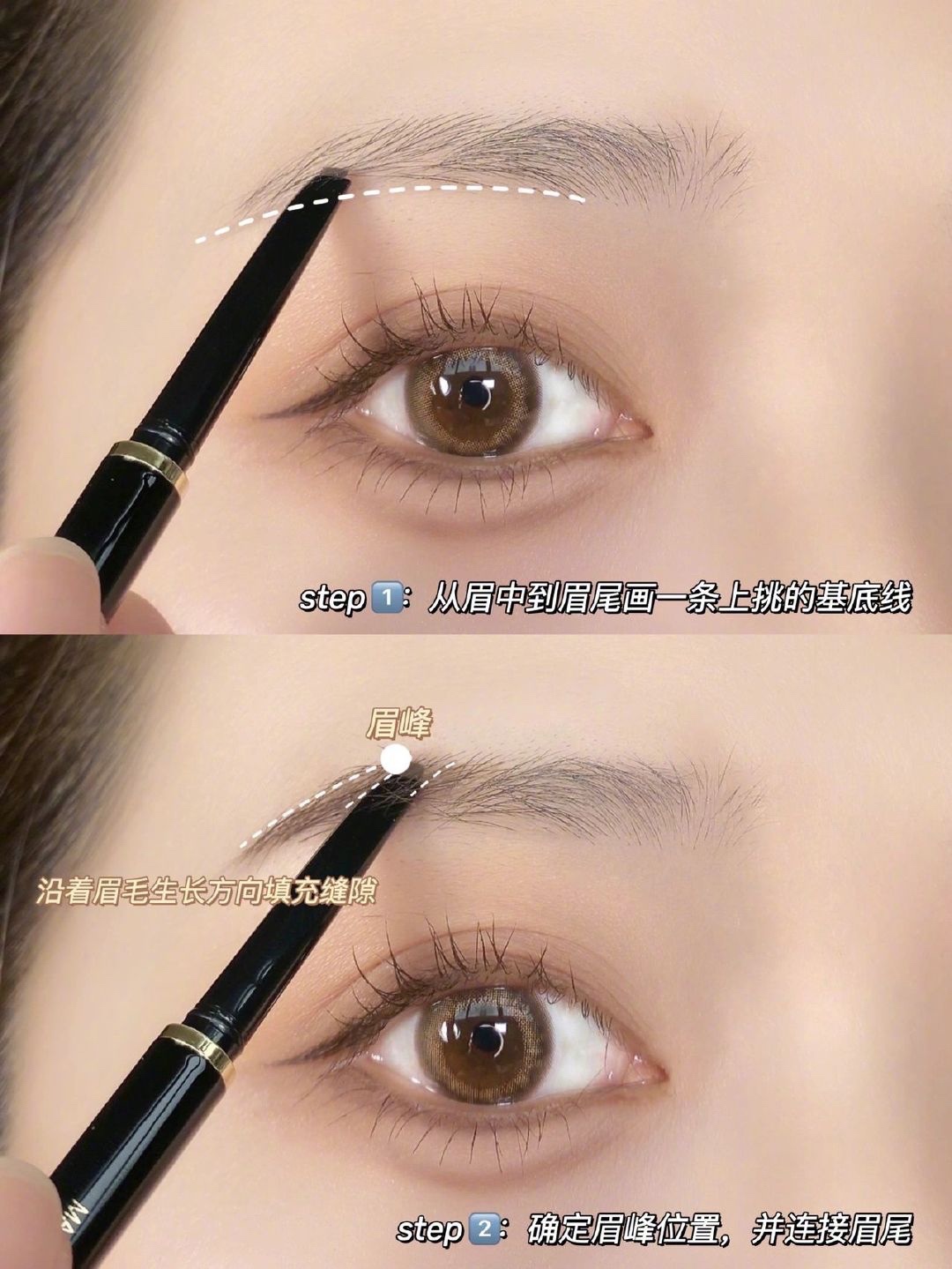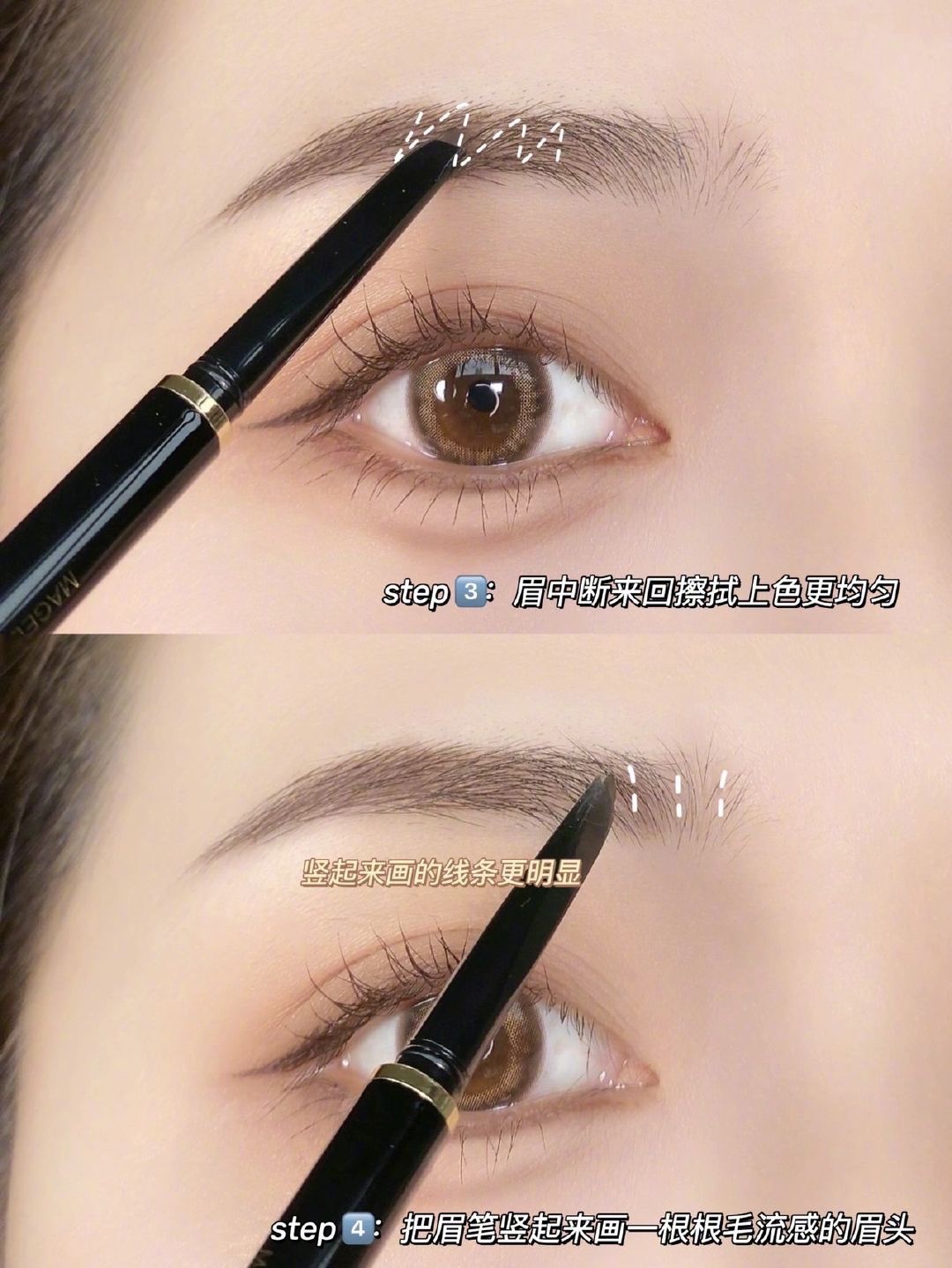 Step4:把眉笔竖起来画一根根毛流感的眉头