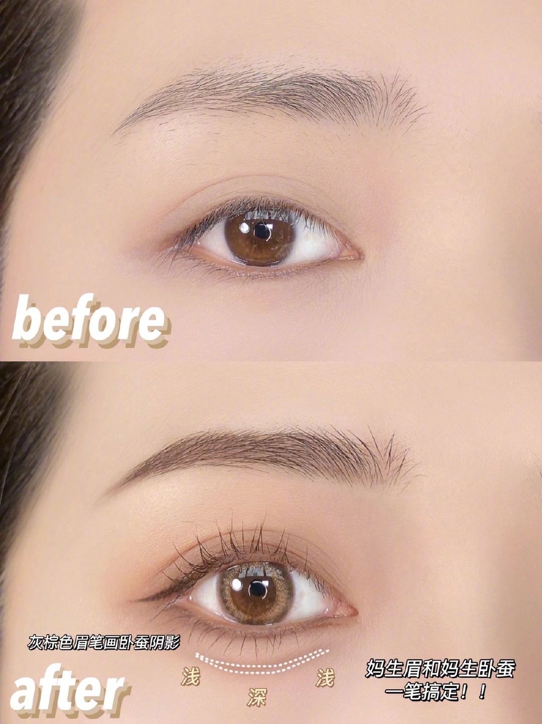 灰棕色画卧蚕阴影也hin自然
