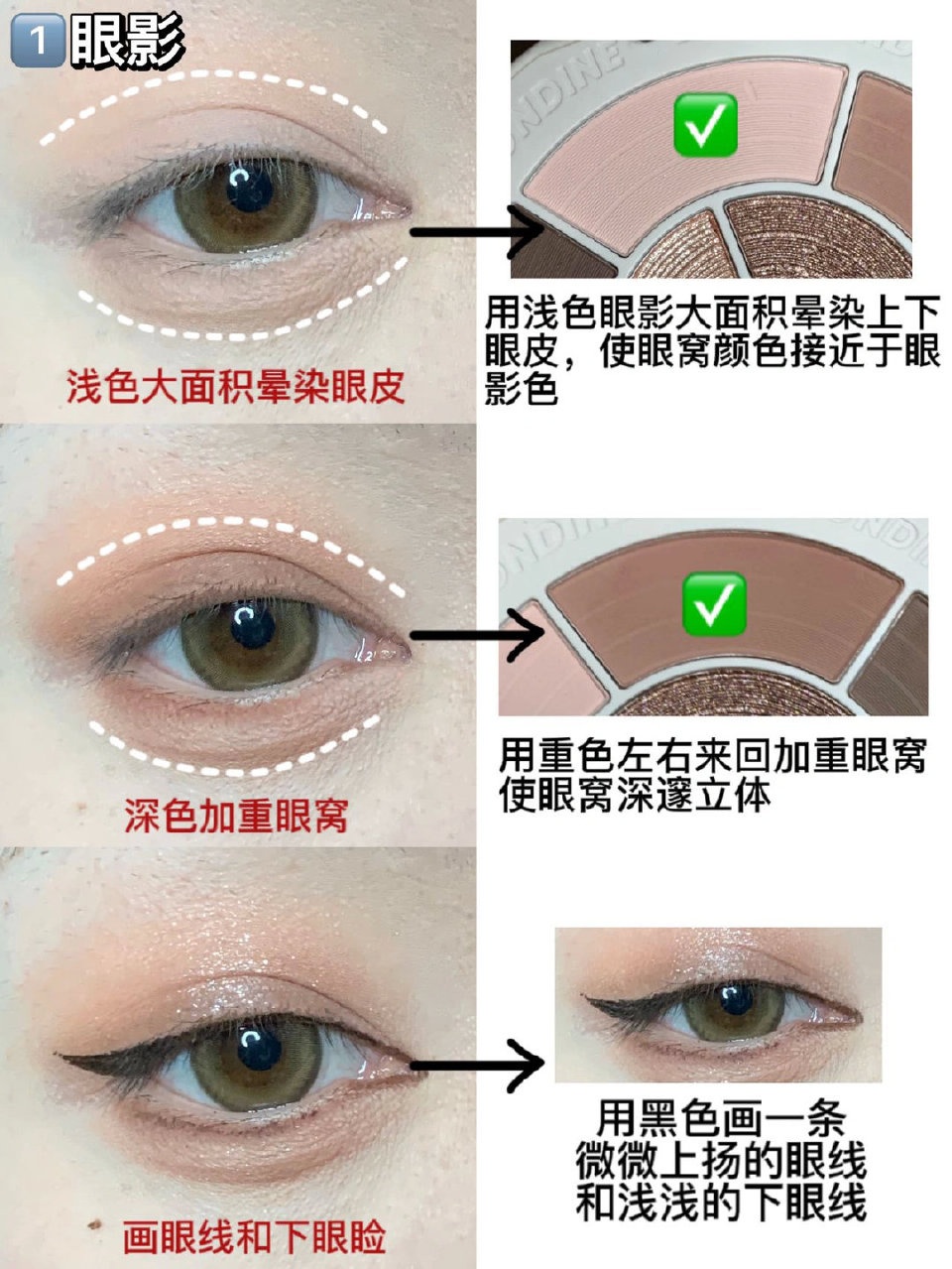 内双眼妆教程!日常温柔淡水眼妆|附详细教程