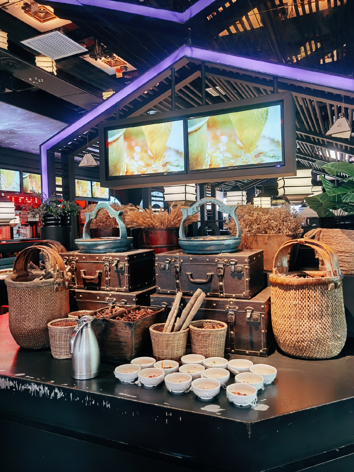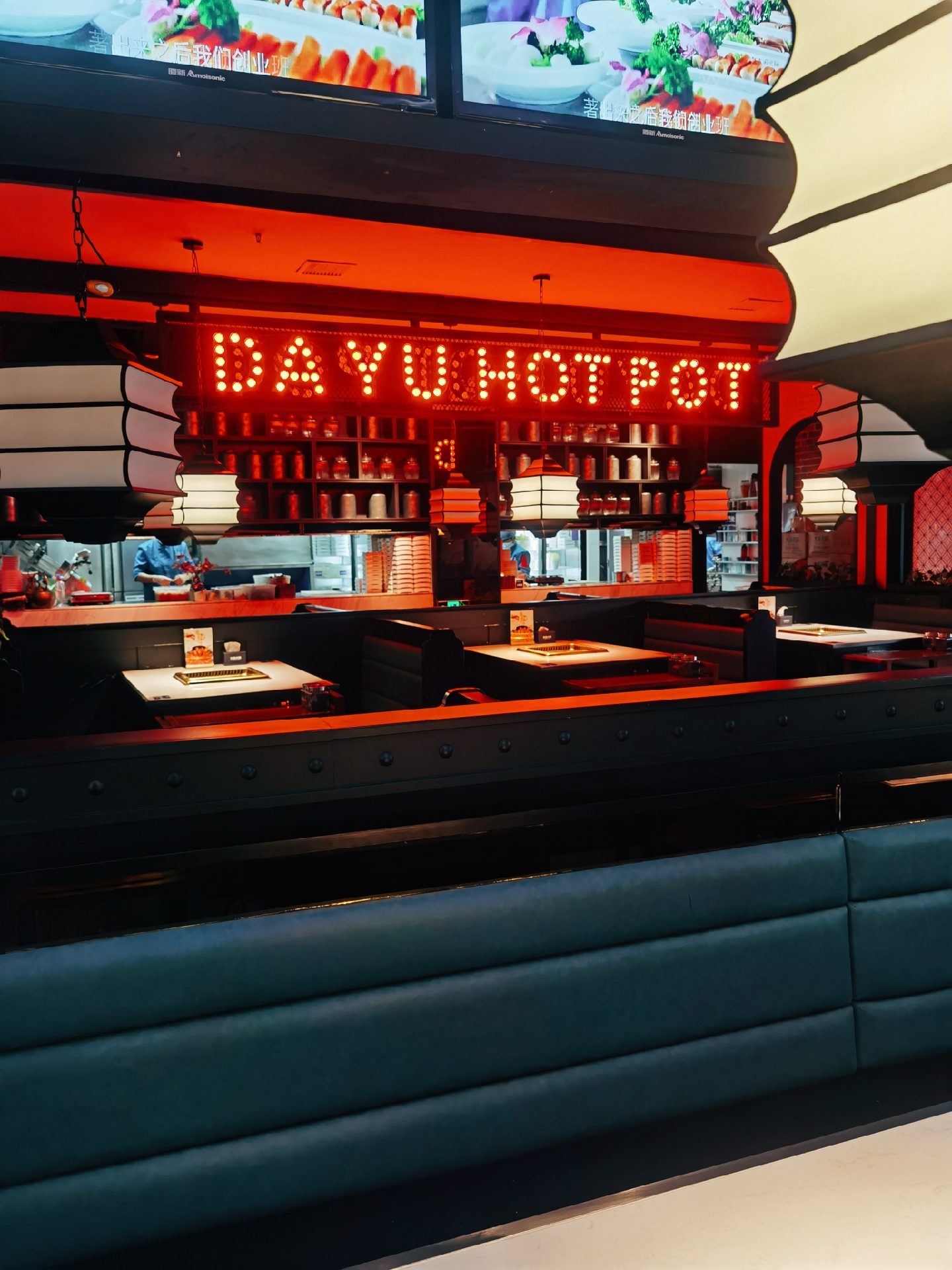 🌸位于热闹的中华城五楼,走进来宁静致远,给人感觉高级感满满。复古的霓虹灯装饰,每个细节都做得很好,自助的酱料台,水果台,小菜台,品种太多了,可以自由挑选。