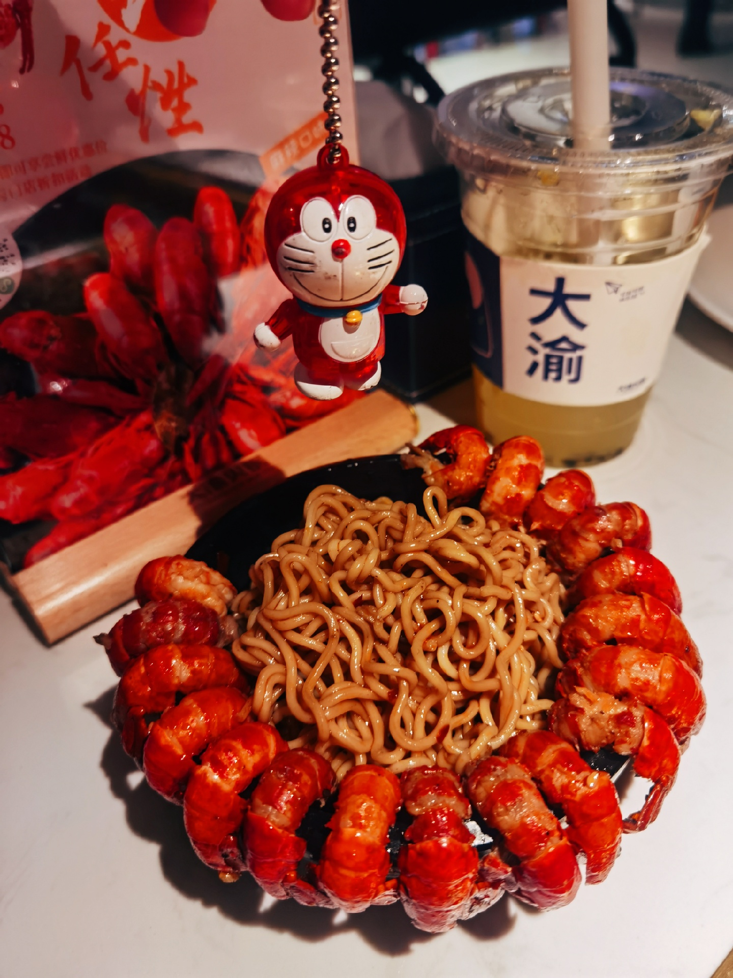 🌸夏天来临,这里也推出了麻辣小龙虾,让你吃火锅的同时还可以享受夏日的快乐,一起来吃小龙虾,底下还有泡面,入味又吸汁,吃起来Q弹爽口。