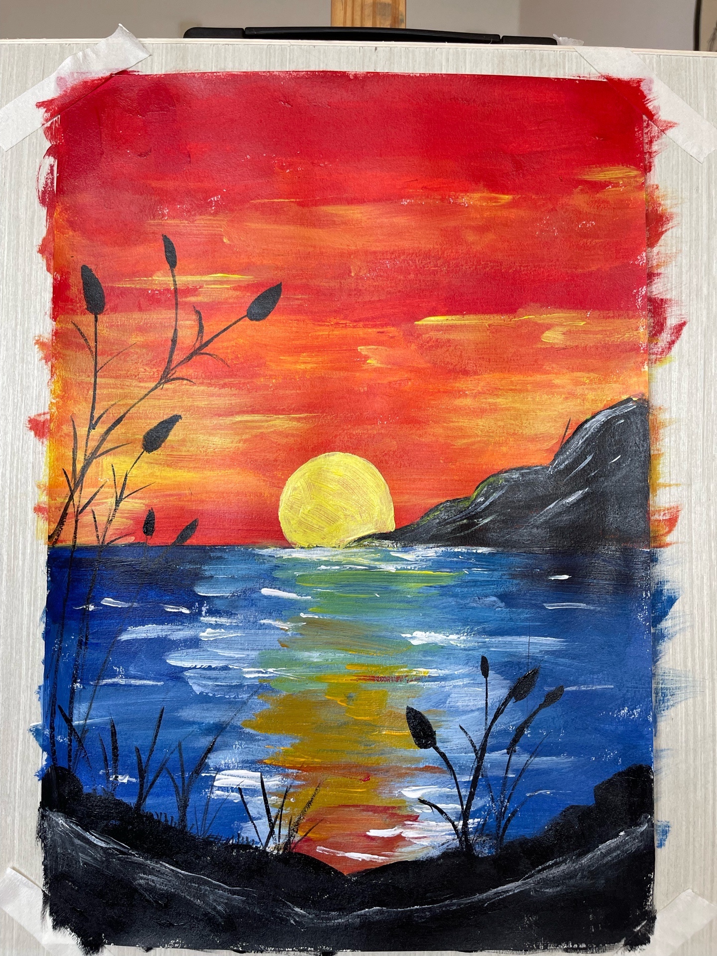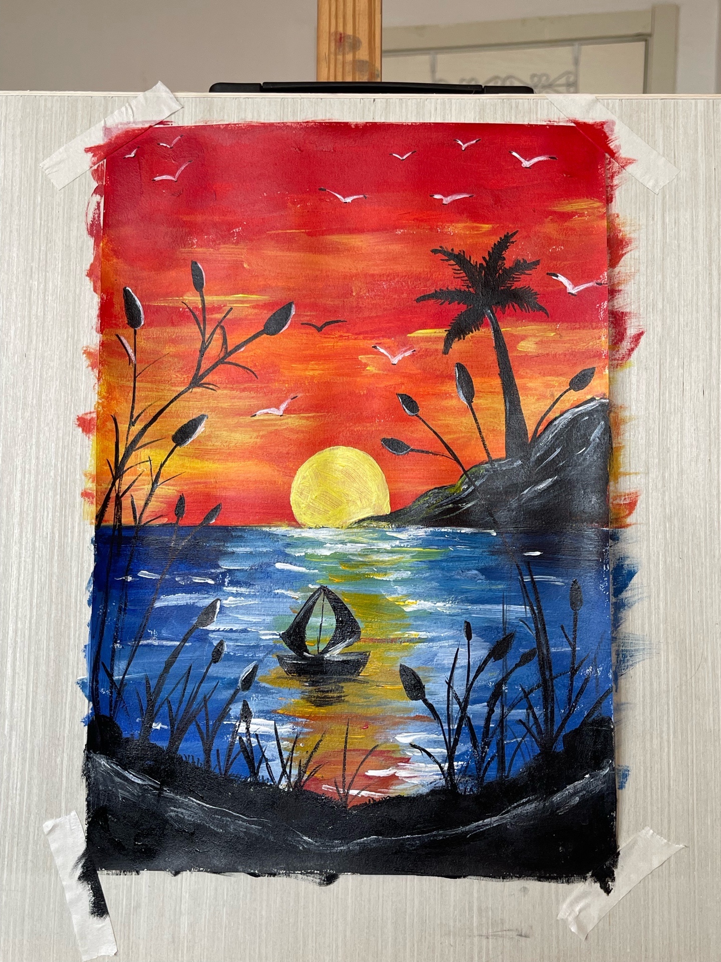 丙烯风景画 画到最后忘记拍步骤啦😜