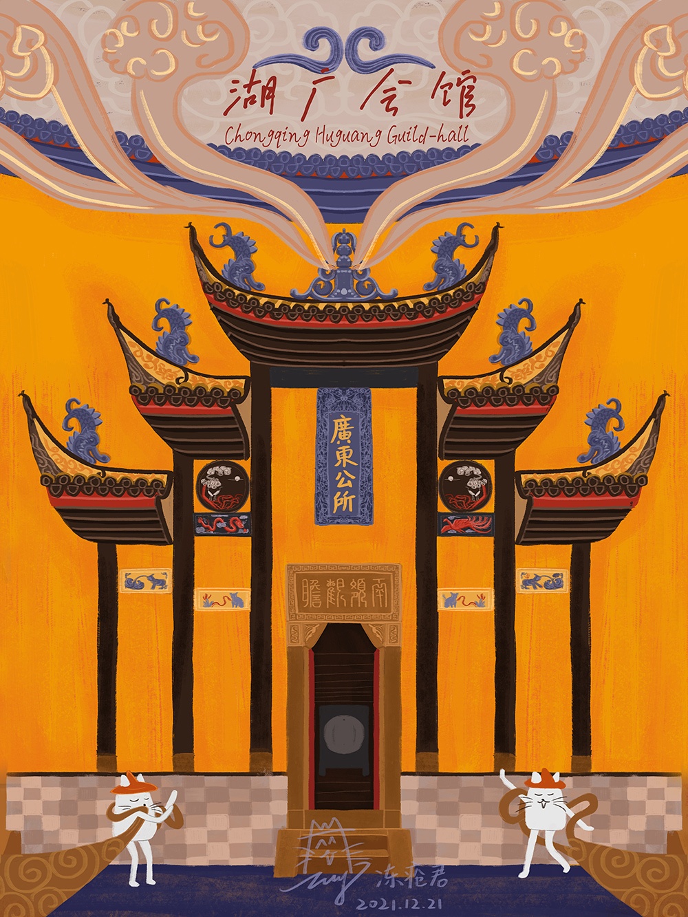 湖广会馆广东会所精致大门~冻疮君手绘重庆