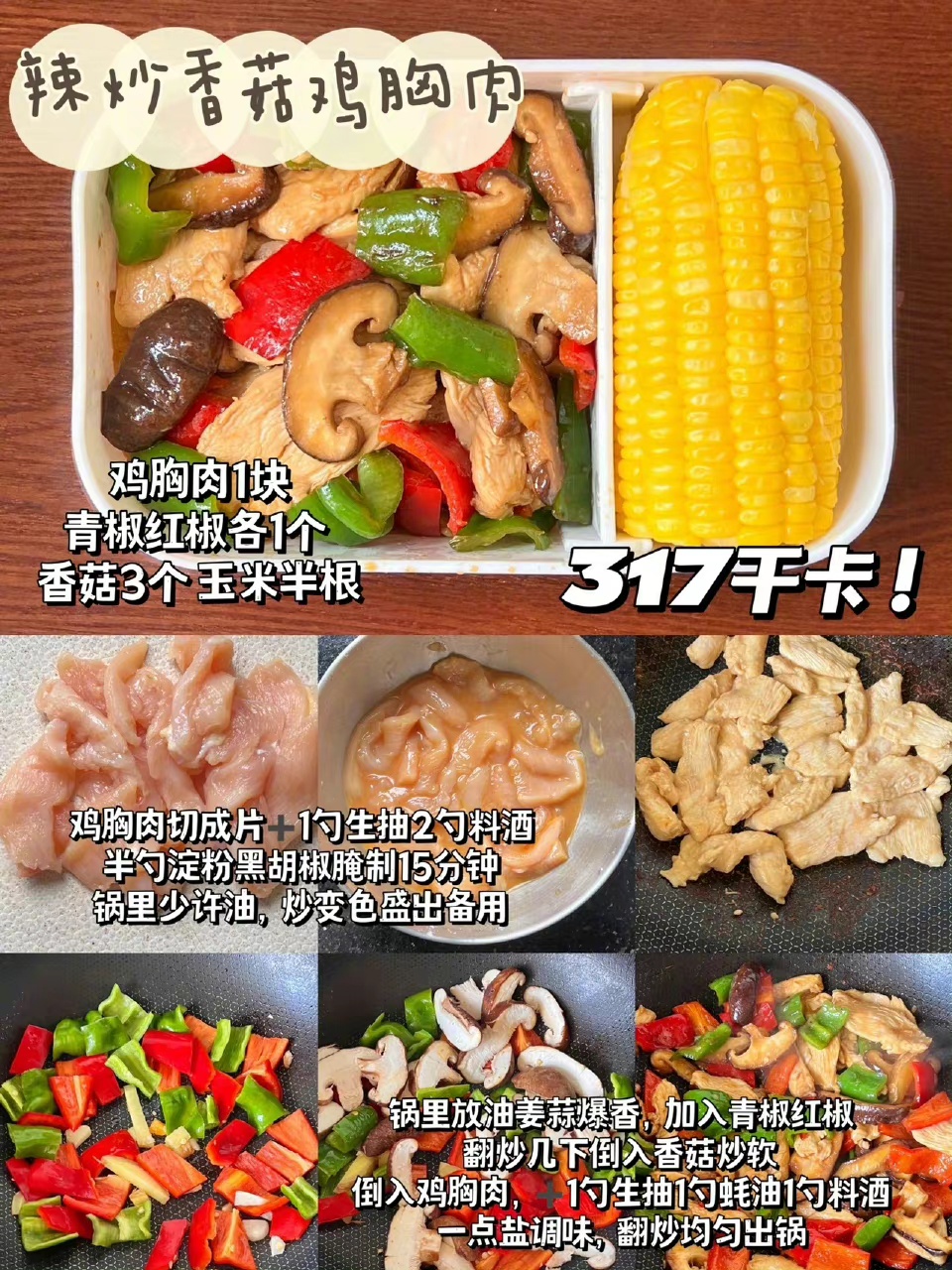 4⃣️辣炒香菇鸡胸肉317kcal