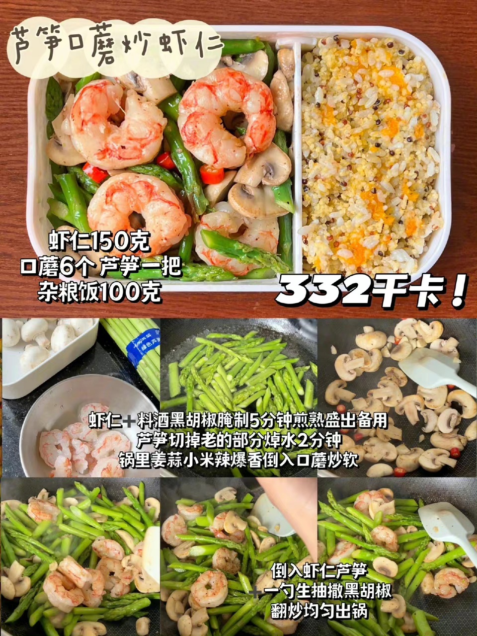 5⃣️芦笋口蘑炒虾仁332kcal