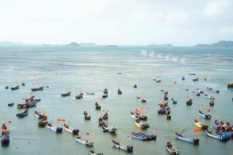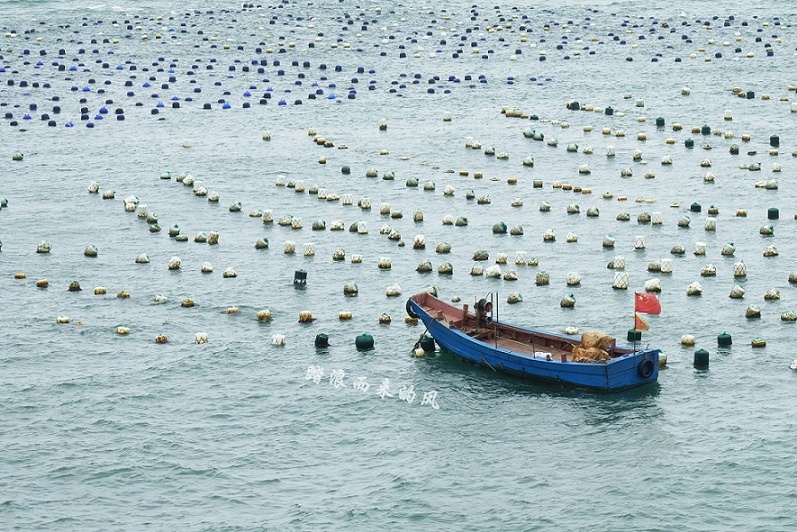 与嵊山岛一桥相隔的是枸杞岛,这里有两个景点,一是万亩海上牧场。由于枸杞岛海域和环境,非常适合养殖贻贝,而且这里出产的贻贝品质优良,很受市场欢迎,所以枸杞岛被称之为贻贝之乡。蔚蓝海面养殖了上万亩贻贝,成了一个独特的景观,被游客们称为海上牧场。