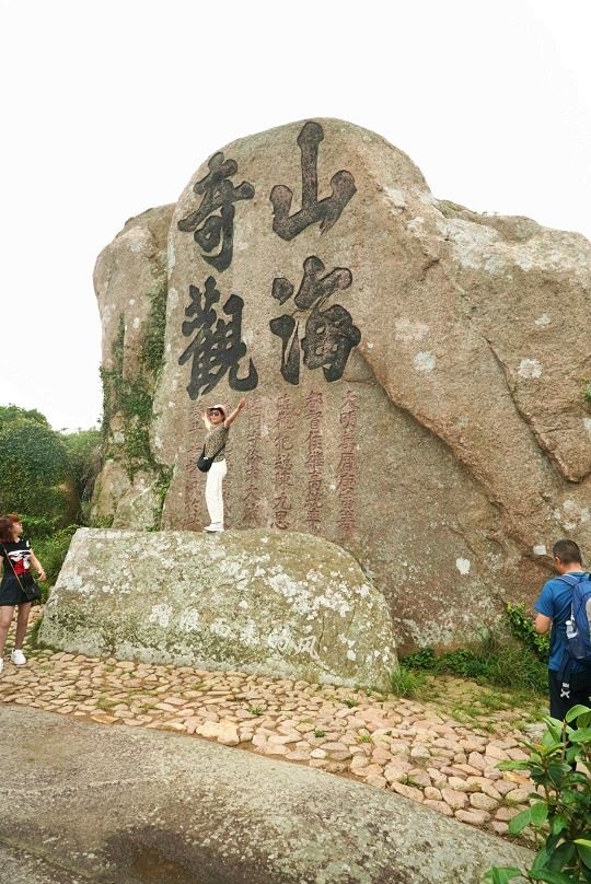 另一个是山海奇观。山海奇观是明朝抗倭纪念碑,上面四个大字是当时浙江总兵侯继高所书,石碑下另有一段小字注着“大明万历庚寅春,都督侯继高统率临观把总陈九思,听用守备宋大斌,游哨把总詹斌、陈梦斗等督汛于此。”