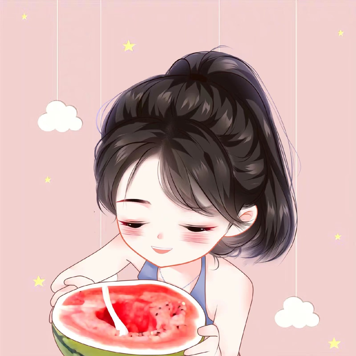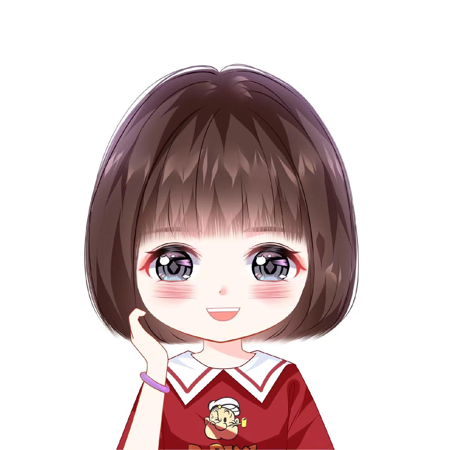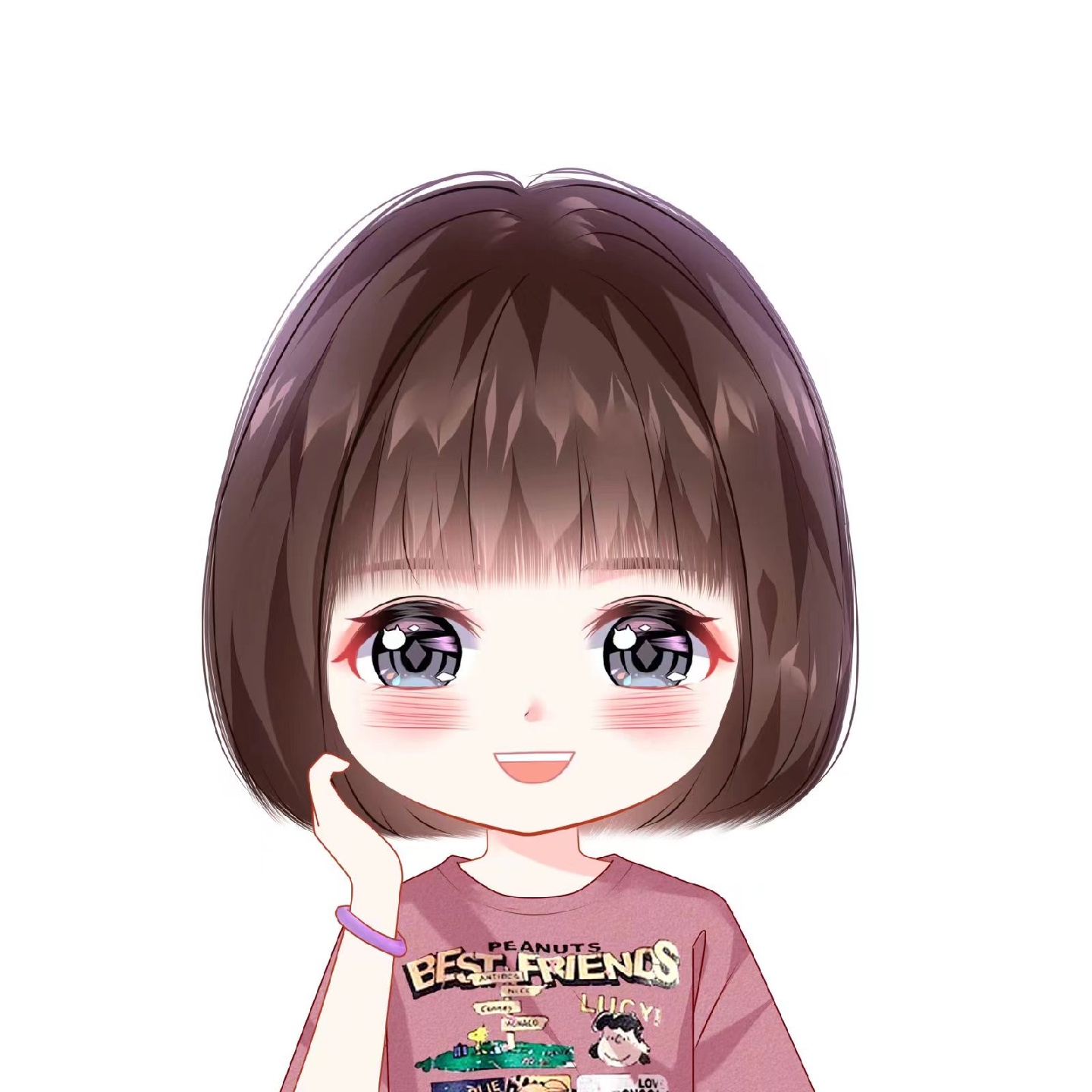 根据女生自己的相片来画,圆圆的脑袋,大大的眼睛,萌萌哒表情,满脸的可爱💞