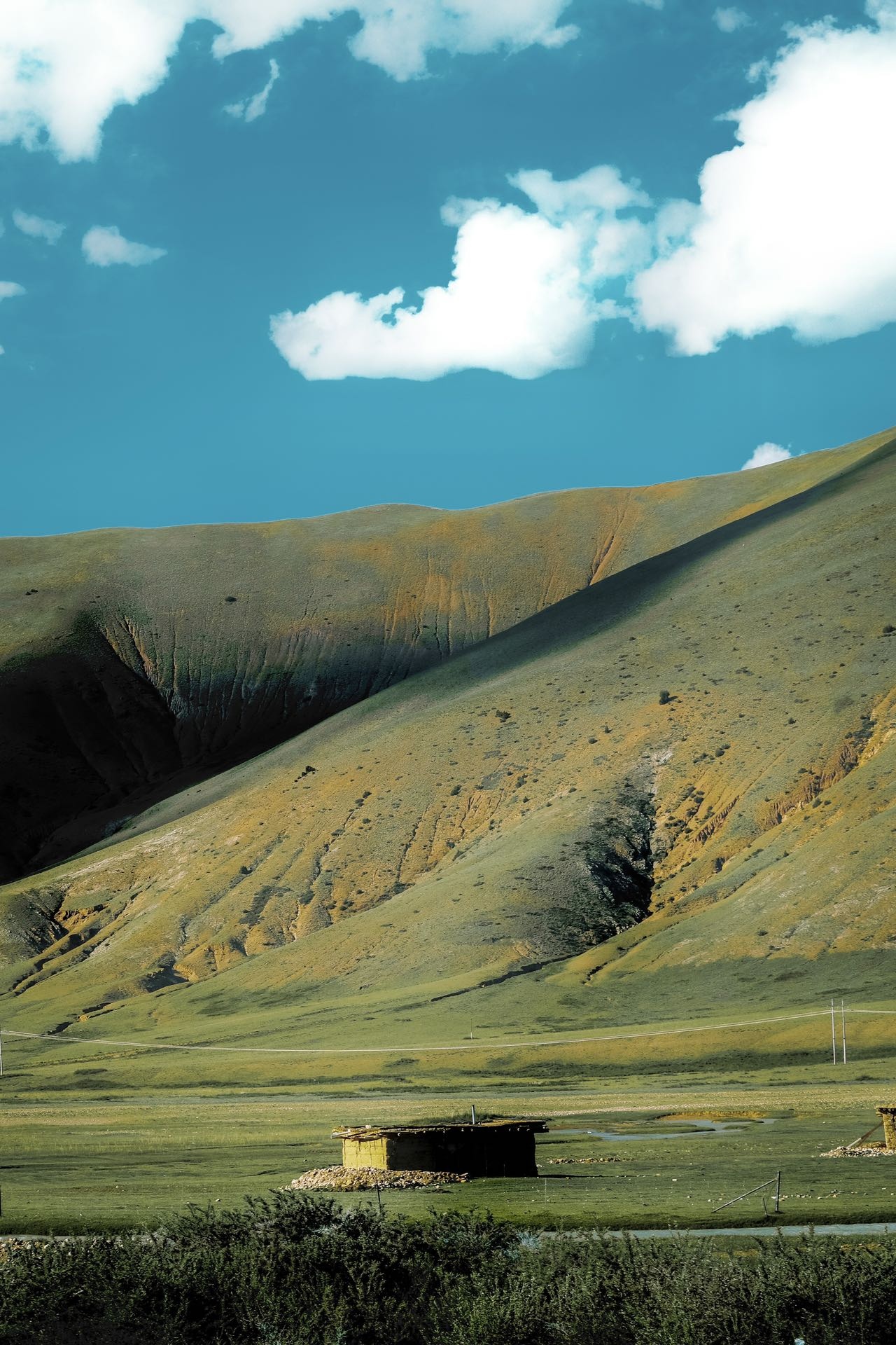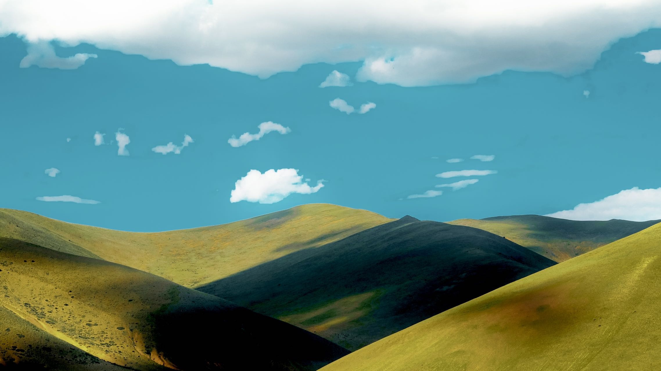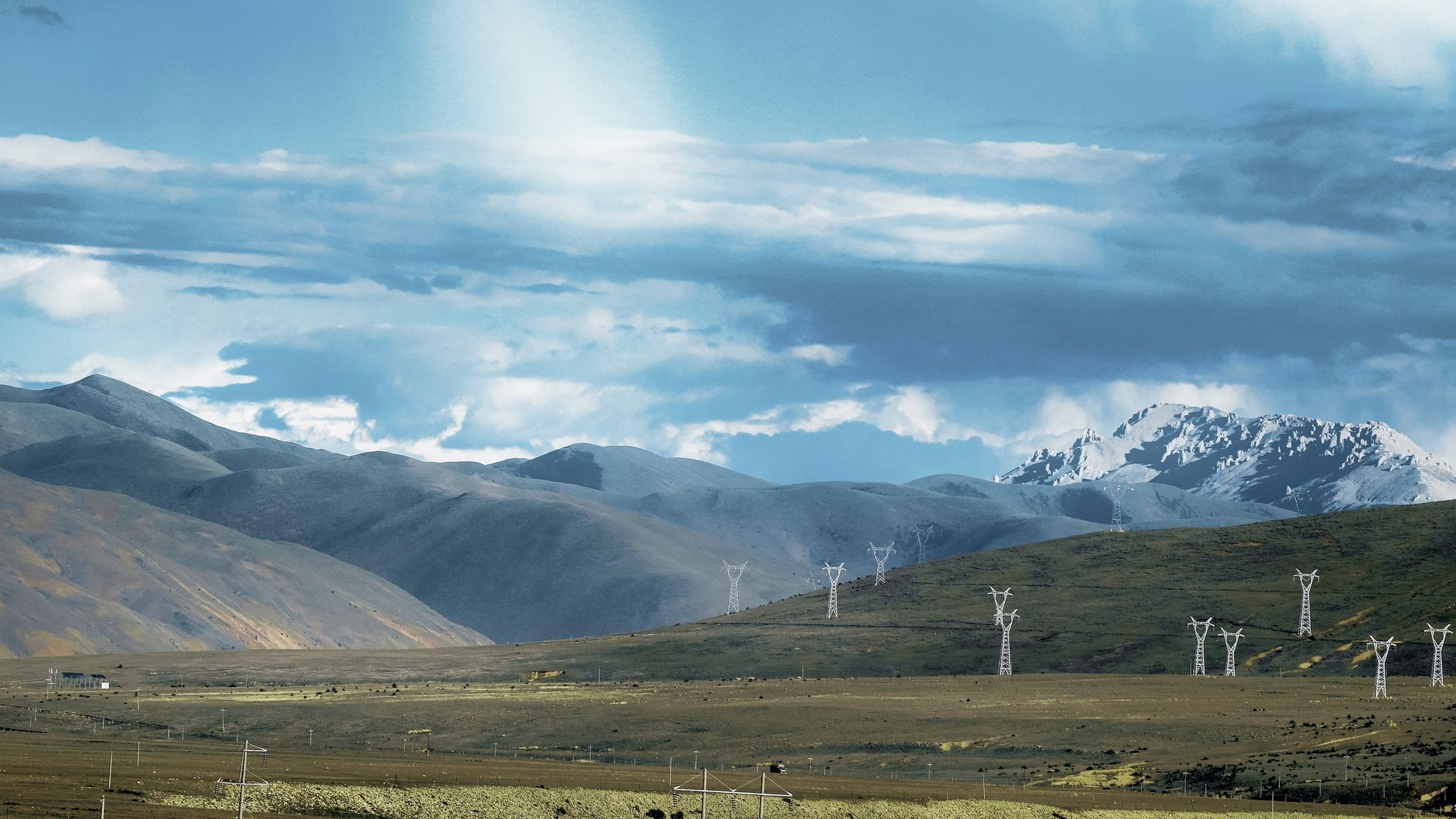 雪山融水和雨水慢慢又汇聚成无数的小溪,最终流到玉曲里,这景象在无垠的草原上恰似一条条飘飞的丝带。遥远的地平线尽头,是一座连一座山势平缓而又变幻无常的山岗。