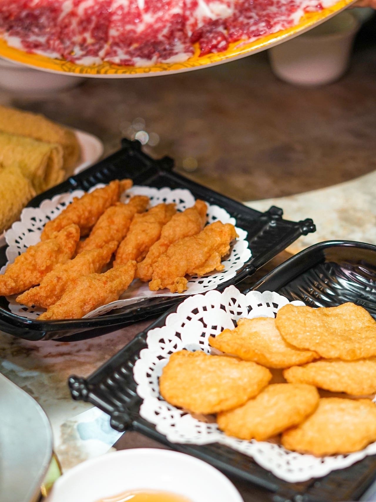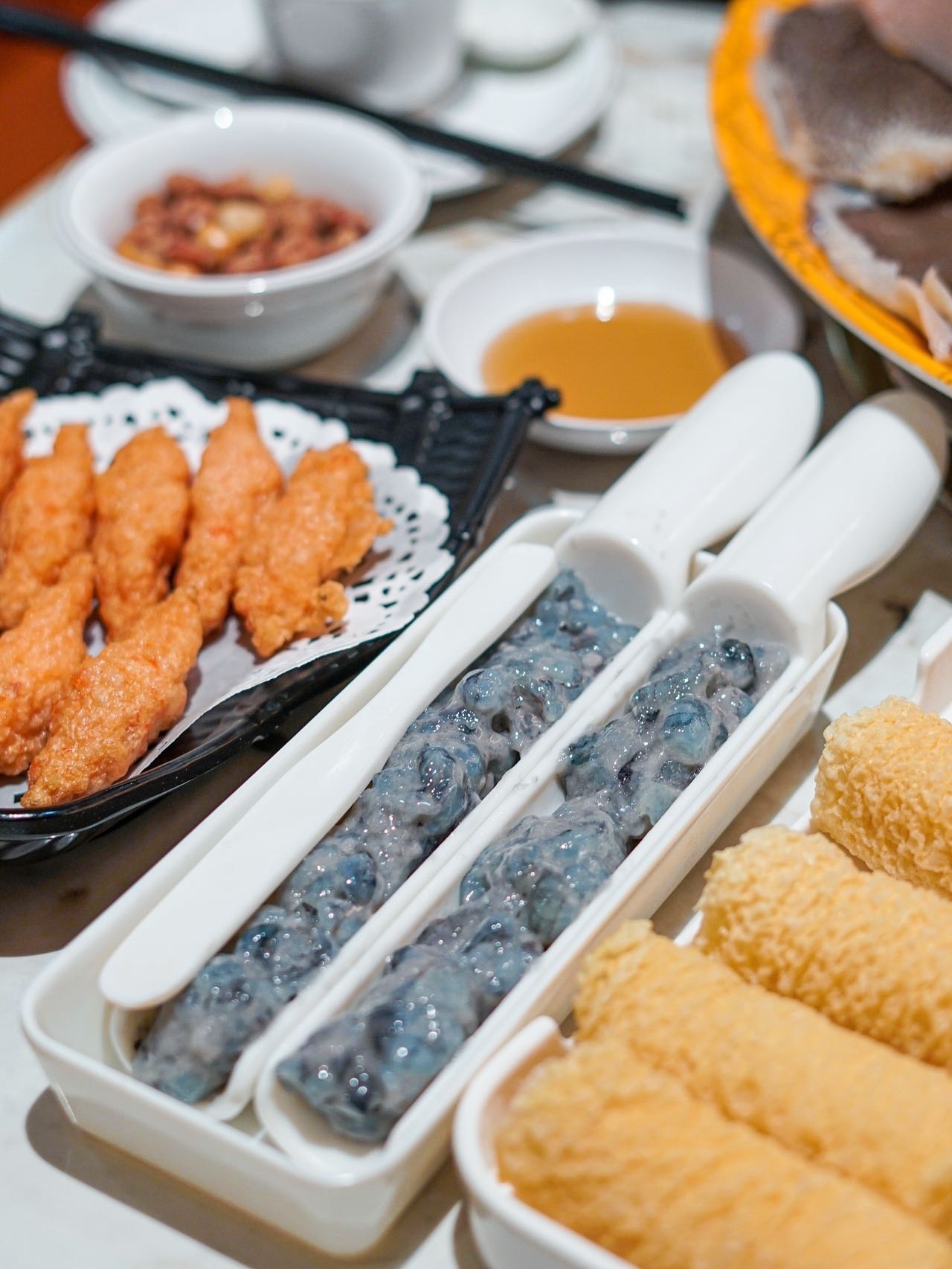 在大目还是第一次吃到这个,把虾泥做成枣的形状,下锅涮吃起来蛮鲜美的,他家的墨鱼饼也不错,现打现做吃起来会弹牙✨
