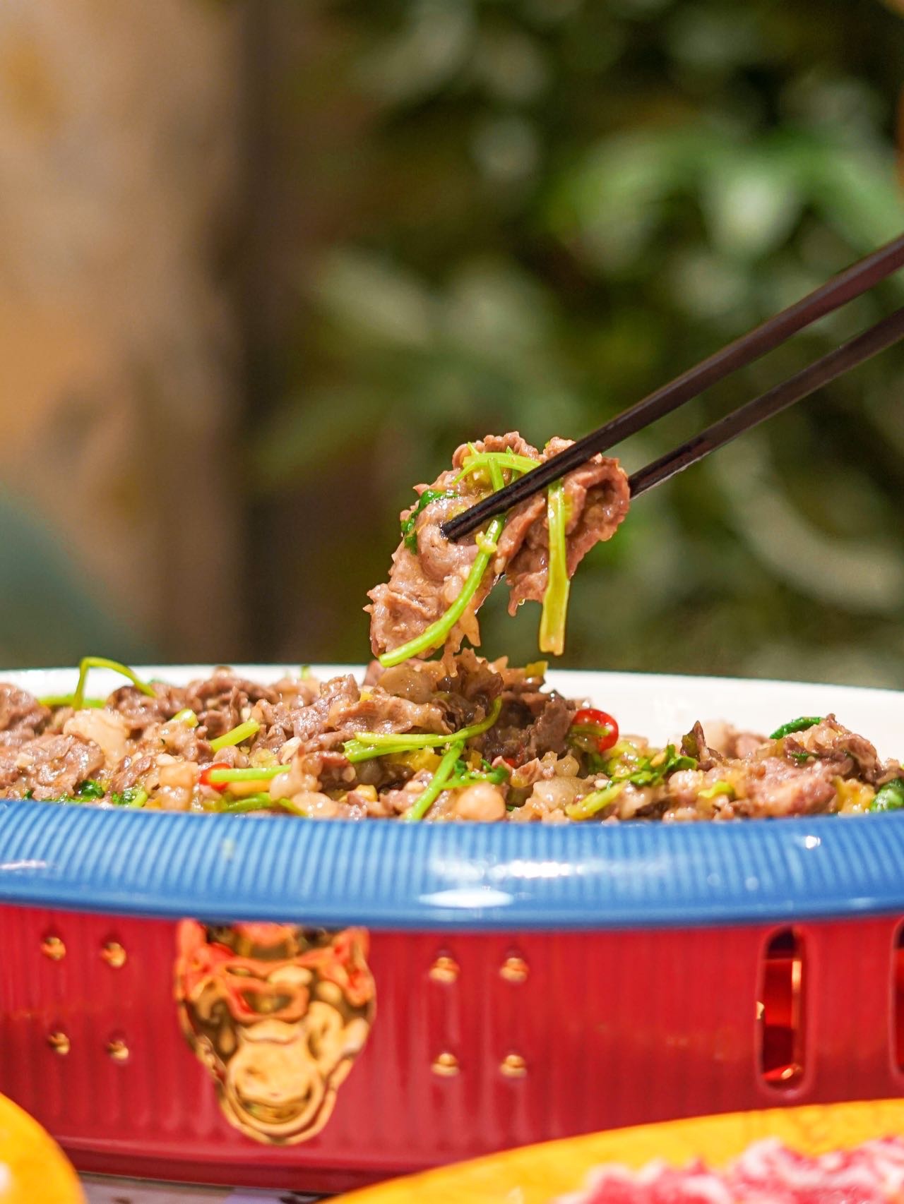 这一盘的份量难怪叫做牛气冲天‼️满满一大盘肥瘦适中的吊龙肉,上桌就飘着香气✨热油爆出了辣椒的香辣又锁住了肉汁,鲜嫩的牛肉+辣椒的组合下饭下酒都一绝✅