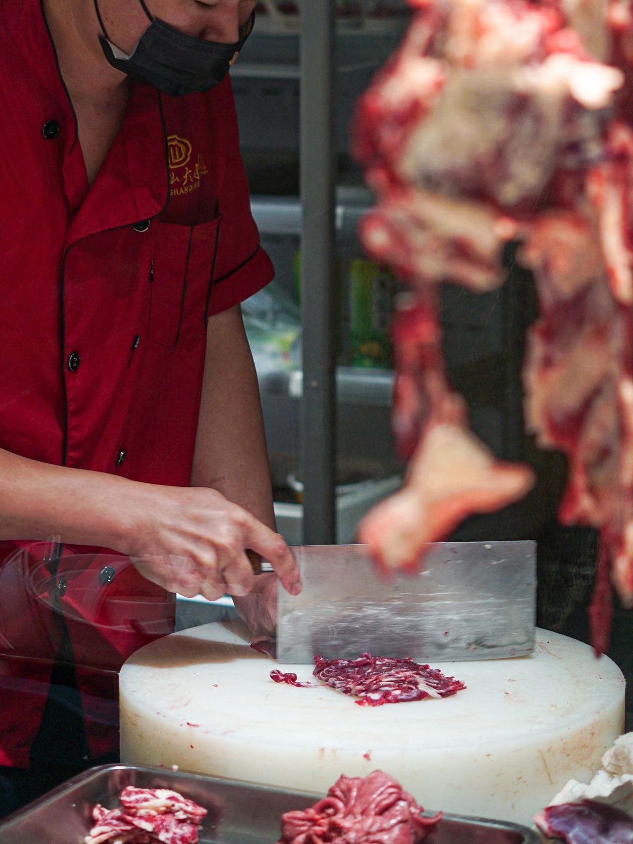 皇岗这家店的装修我还是挺喜欢的,经典与现代的碰撞,满是烟火气✨明亮的鲜肉档口,可以看到师傅顺着纹理把牛肉切得厚薄适中✔️聚餐还有包房可以选择。