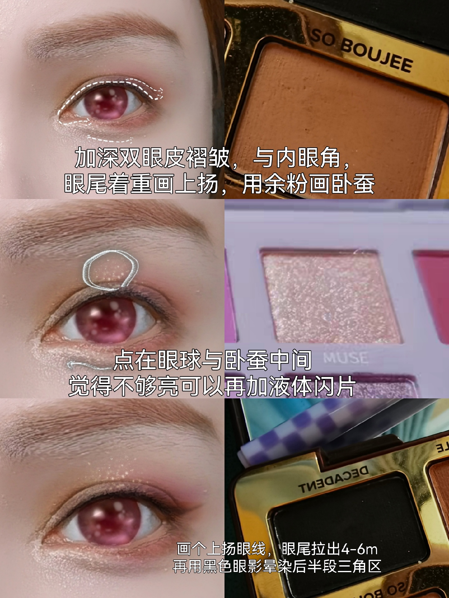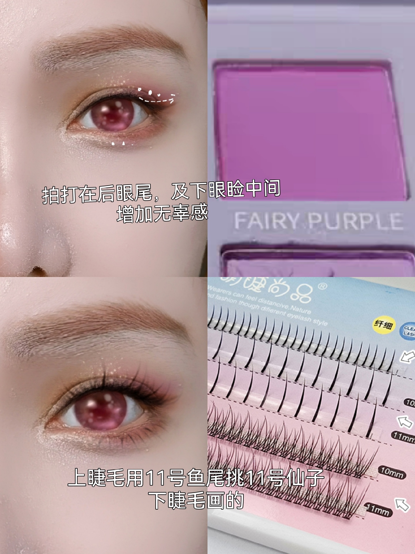 2)最后上紫色眼影,用拍打的方式上色,会比较显色干净。