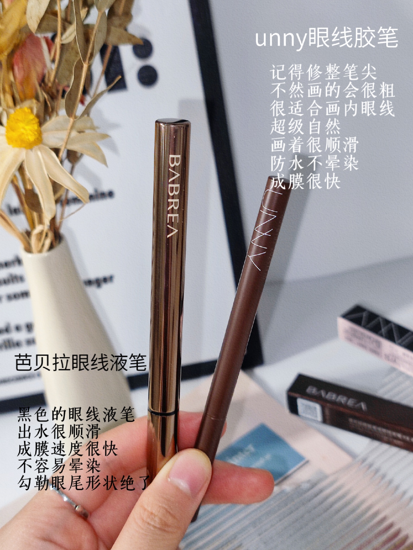 今天收到啦unny眼线胶笔和芭贝拉的眼线液笔