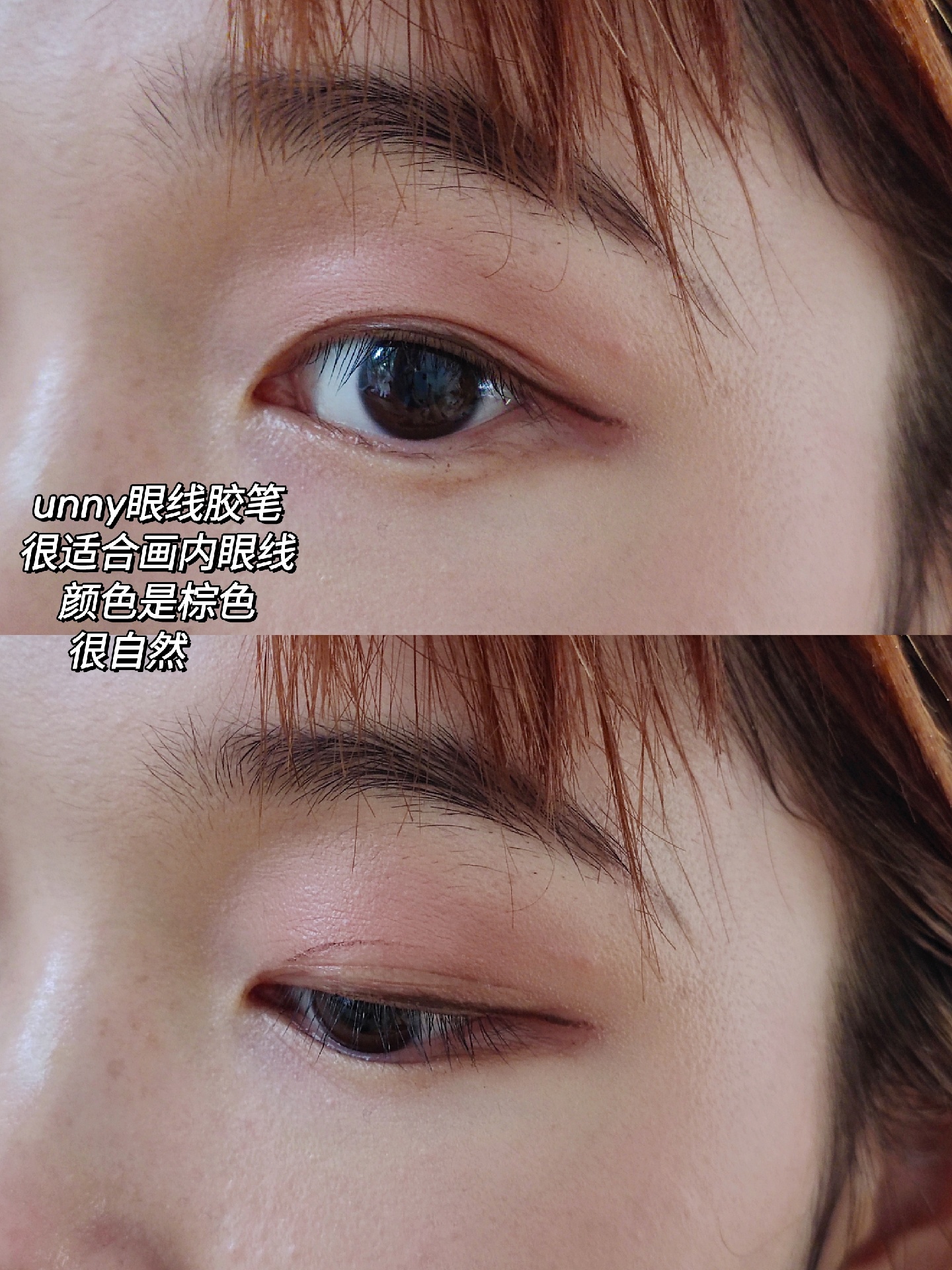 unny眼线胶笔是棕色的,画内眼线非常适合,成膜快不晕染