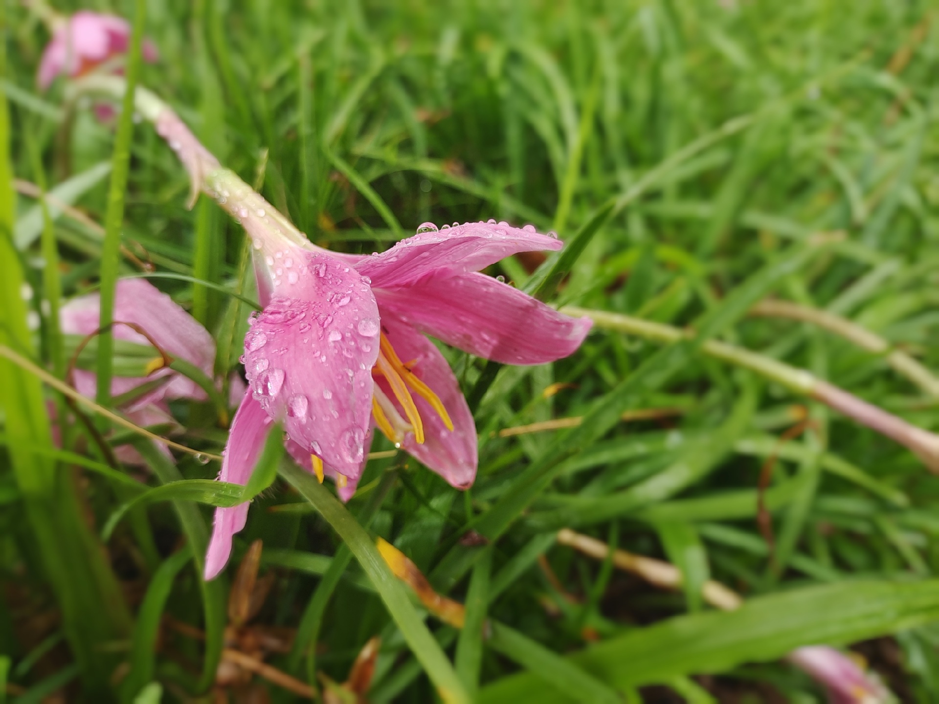 雨后的清晨,那小草那小树身披一身的露珠,叶子上沾满小雨滴,空气异常清新,充满着芳草香味。