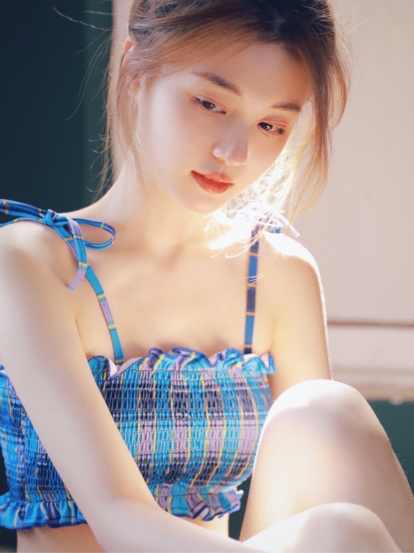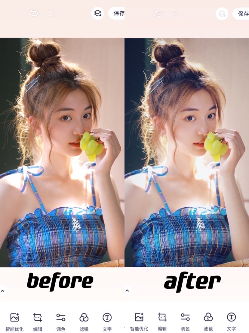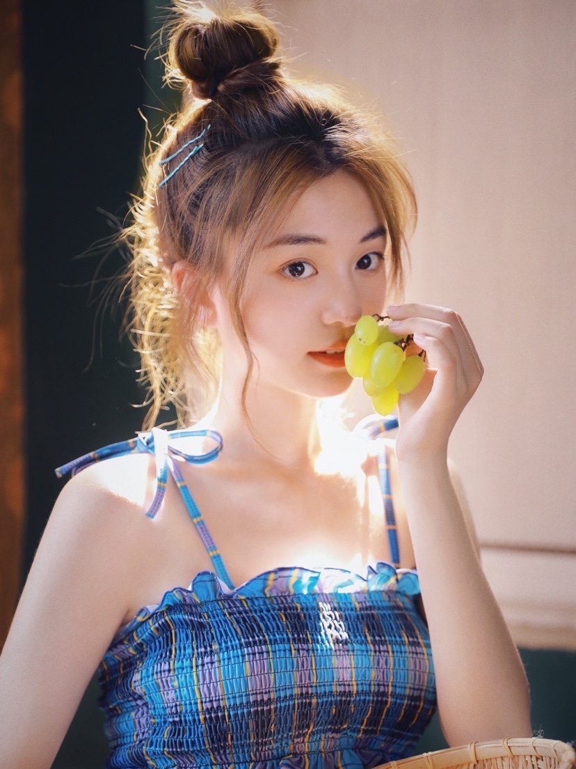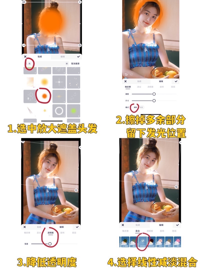 1⃣️让阳光从背后照在人物头发上,扎丸子头记得留一些碎发,阳光才能透过发丝噢~