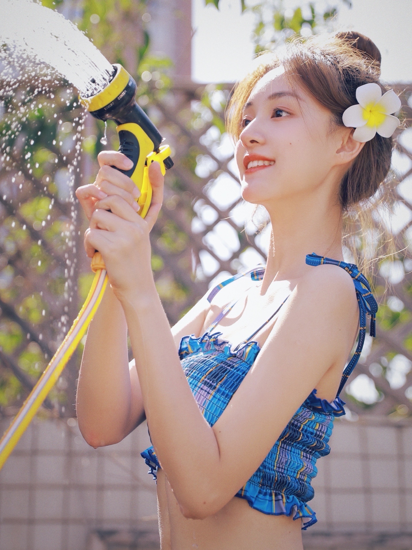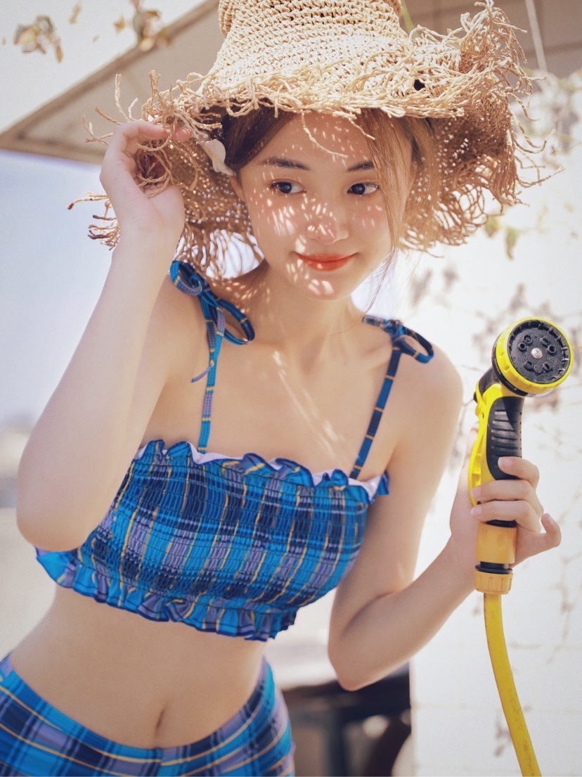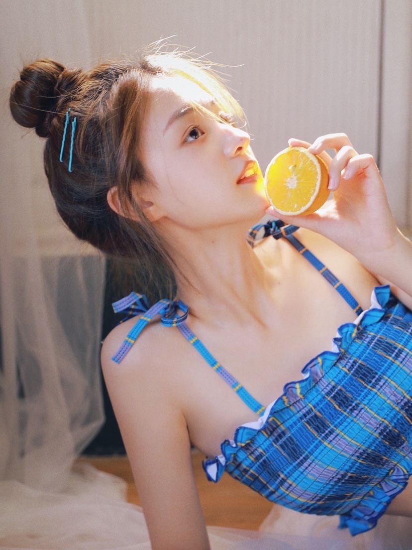 1⃣️让阳光从背后照在人物头发上,扎丸子头记得留一些碎发,阳光才能透过发丝噢~